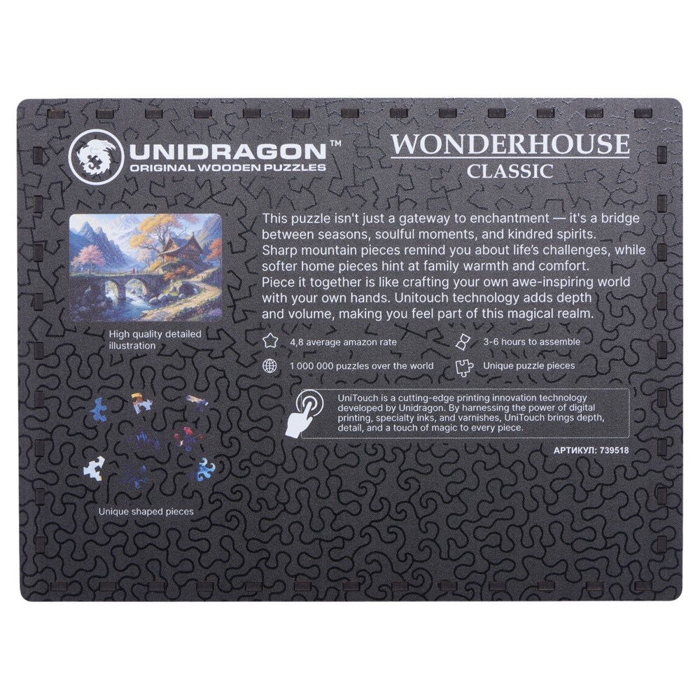 Атмосферная черно-белая иллюстрация позволит с головой погрузиться в сборку. А фирменная технология печати Unitouch дарит ей глубину и объем, который оживет под вашими пальцами.