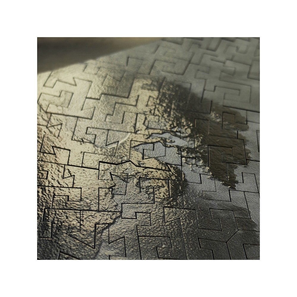 У пазла уникальный — гипнотический — рез. Детали меняются от жестких геометричных, до мягких и извилистых, чтобы в конце концов сойтись к храму в центре картины «воронкой», в которой исчезнут все ваши тревоги и заботы.