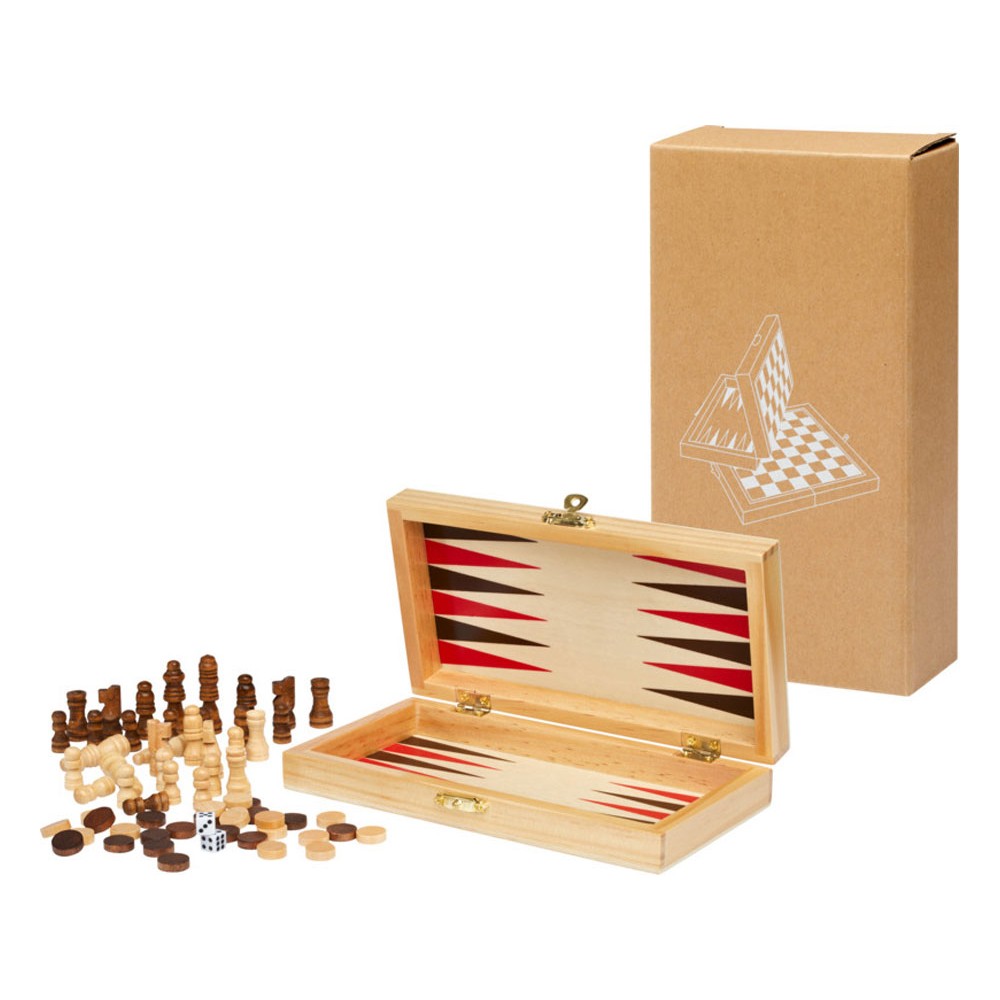 Деревянный игровой комплект Mugo «3 в 1» является идеальным спутником для любителей игр и семей, ищущих разнообразные развлечения. Этот набор сочетает в себе вечные, классические игры в шахматы, шашки и нарды, обеспечивая часы веселья и стратегических испытаний. Коробка изготовлена из сосновой древесины премиум-класса и отличается природным и простым шармом. Его прочная конструкция обеспечивает долговечность, а железные петли и замок придают элегантность и защищают содержимое. Дополнительно в комплект входят два кубика из высококачественного меламина. Стратегия игры в шахматы, соревнование в шашках или тактическая игра в нарды — этот набор предлагает бесконечные возможности для создания незабываемых впечатлений. Поставляется с коробкой из крафт-бумаги и инструкцией по эксплуатации.