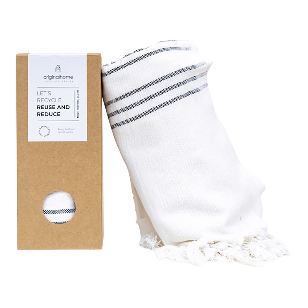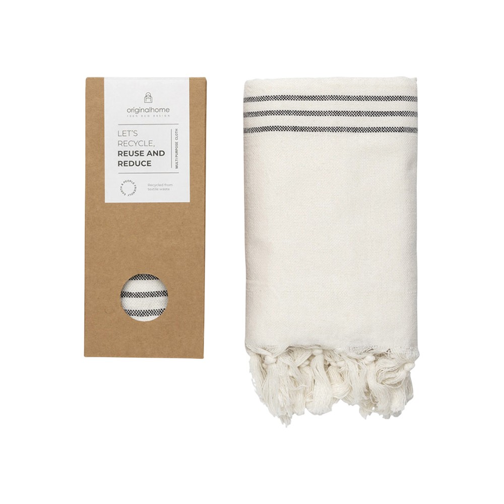 Этот универсальное изделие — достаточно плотное, чтобы использовать его как плед или полотенце, тонкое настолько, чтобы носить как шарф, и компактное, чтобы брать с собой куда угодно. Сделанное из 100% переработанных материалов текстильной отрасли в Бангладеше и сотканное на традиционной ручной ткацкой раме, оно способствует развитию женского предпринимательства. Идеальный социальный подарок, который вносит вклад как в устойчивое, так и в социально ответственное дело. Размер: 85 × 175 см. Состав: 70% переработанного хлопка, 25% переработанного полиэстера, 5% других переработанных волокон.