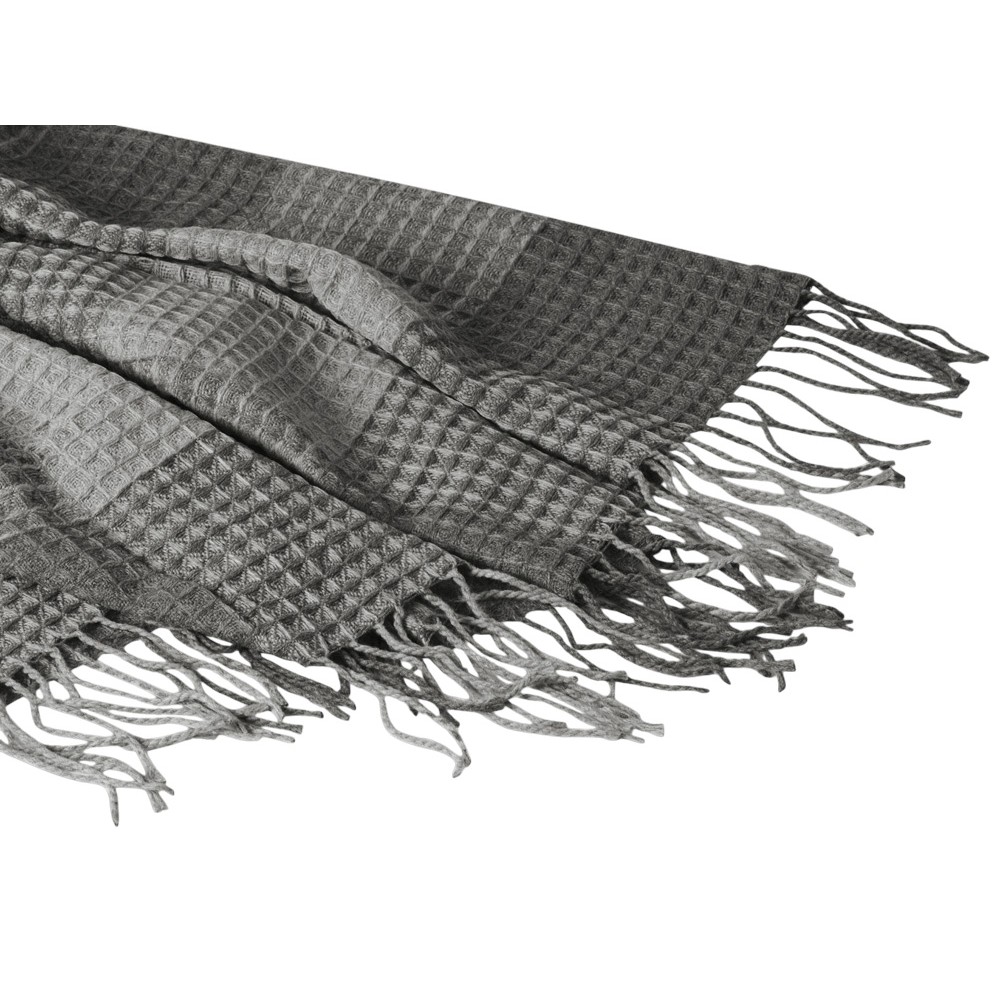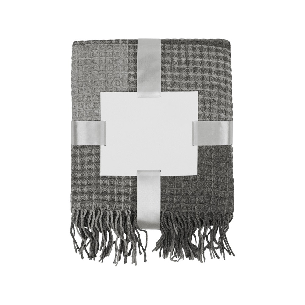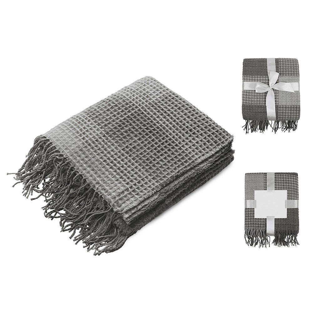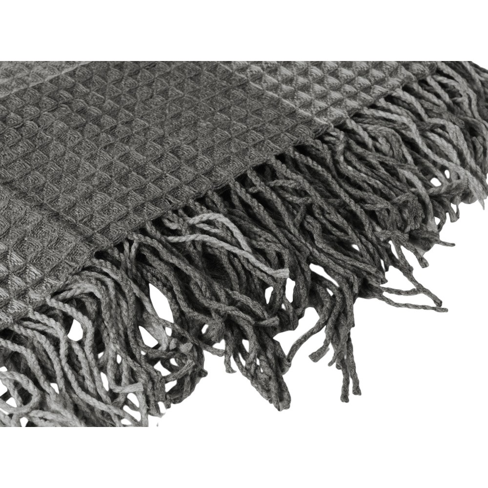 Теплый плотный плед из акрила, украшенный бахромой, имеет приятную на ощупь текстуру поверхности и создает атмосферу комфорта и уюта.