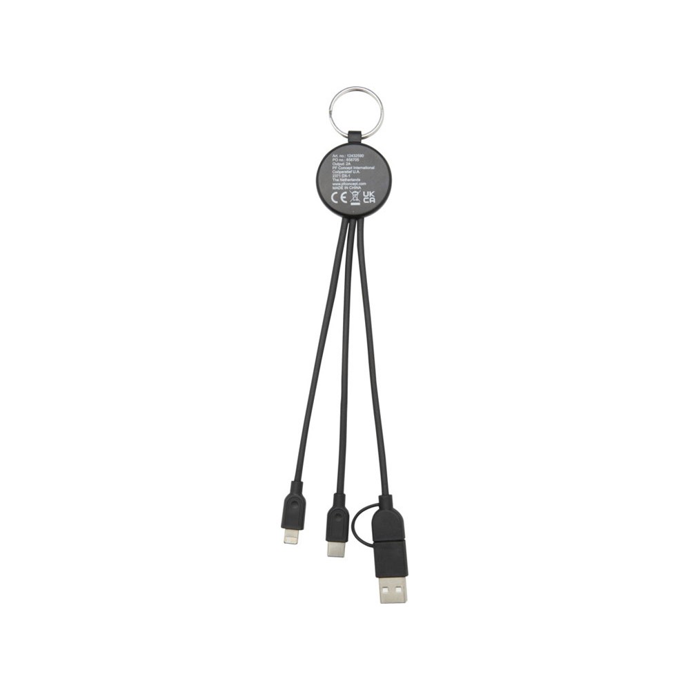 Кабель для зарядки Tecta «6 в 1» из переработанного пластика/бамбука с брелком, сплошной черный