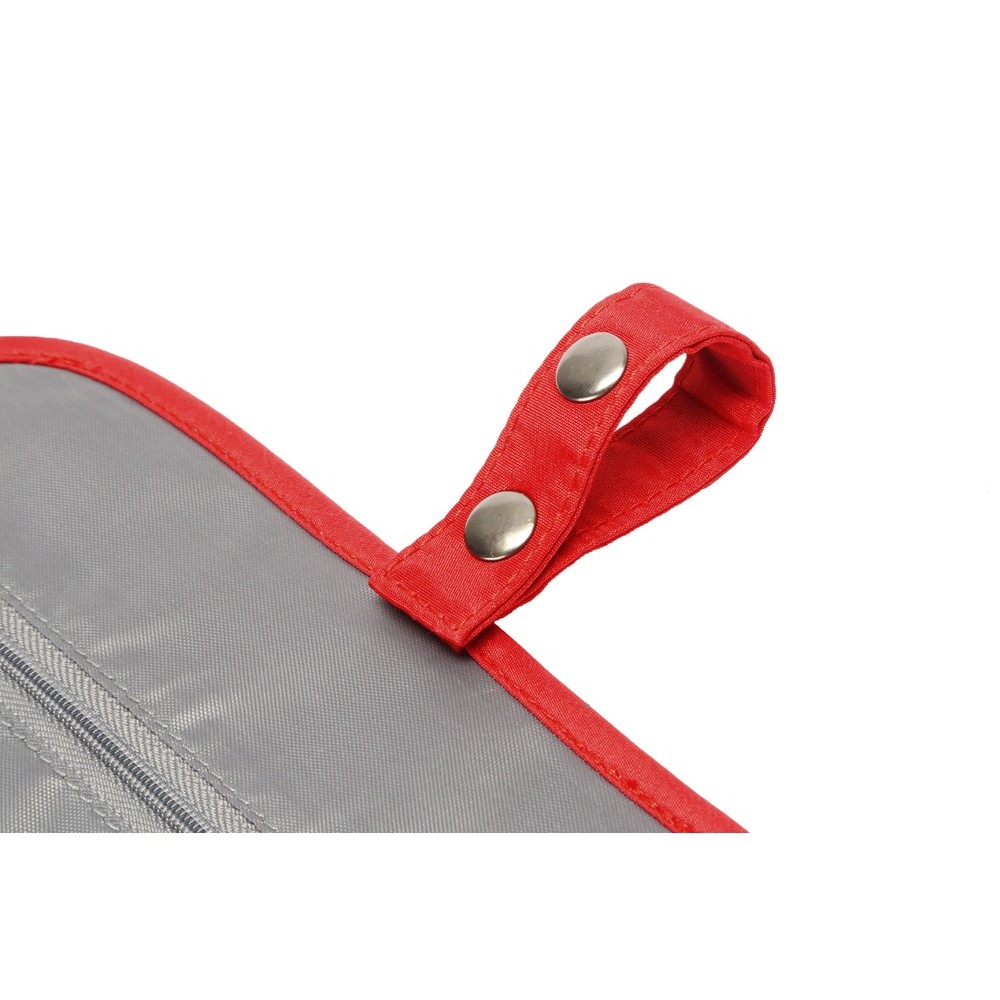Органайзер состоит из карманов на молнии, карманов-сеток, прозрачного моющегося кармана на молнии, в который можно поместить флаконы с жидкостью — даже если емкость разгерметизируется, карман легко очистить под струей воды.
