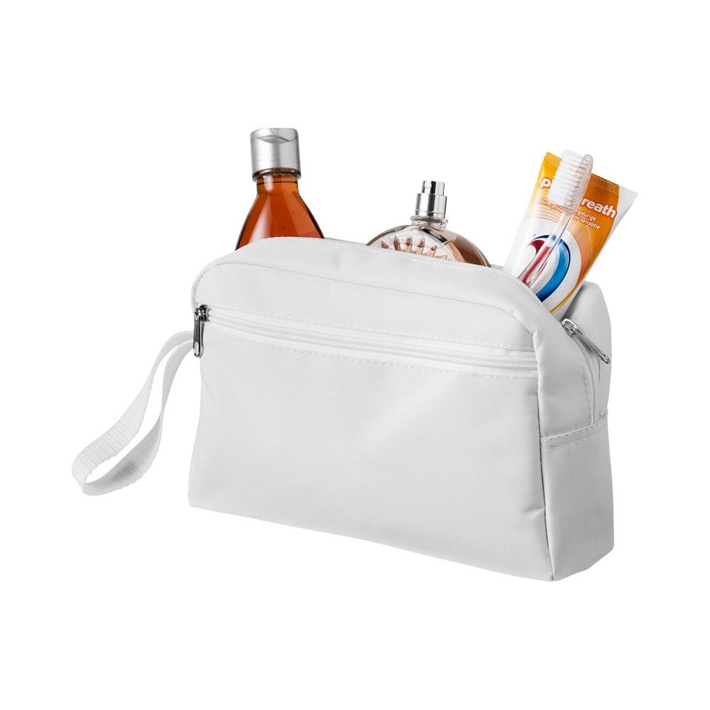 Вместительная косметичка с петлей, основным отделением на молнии и передним карманом на молнии из полиэстера.