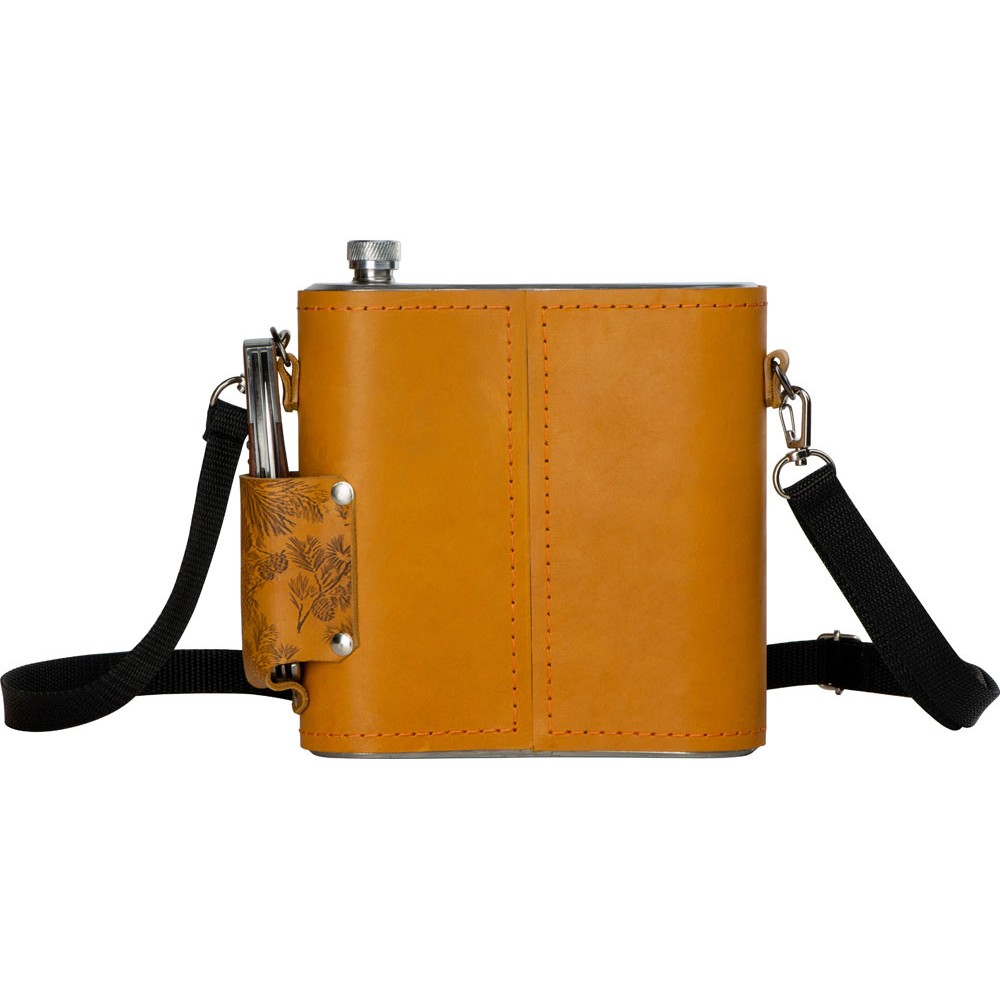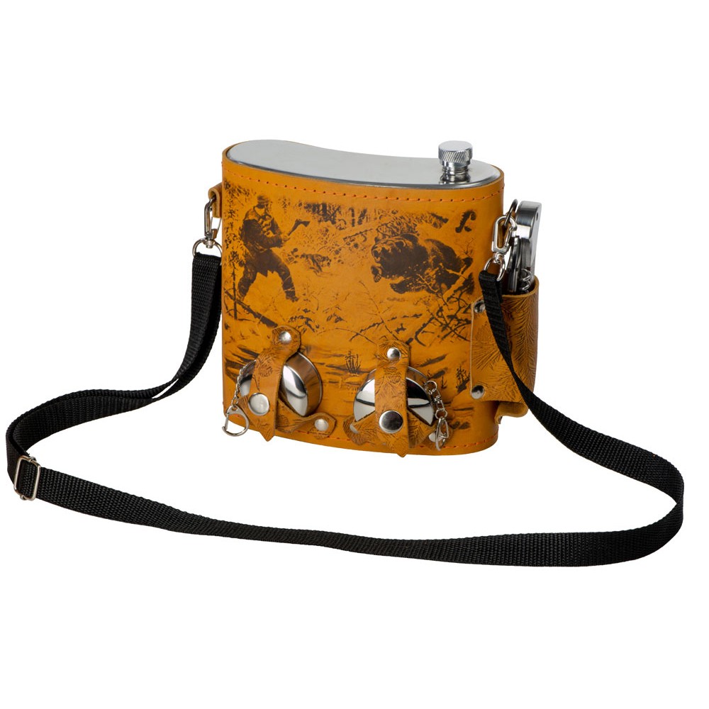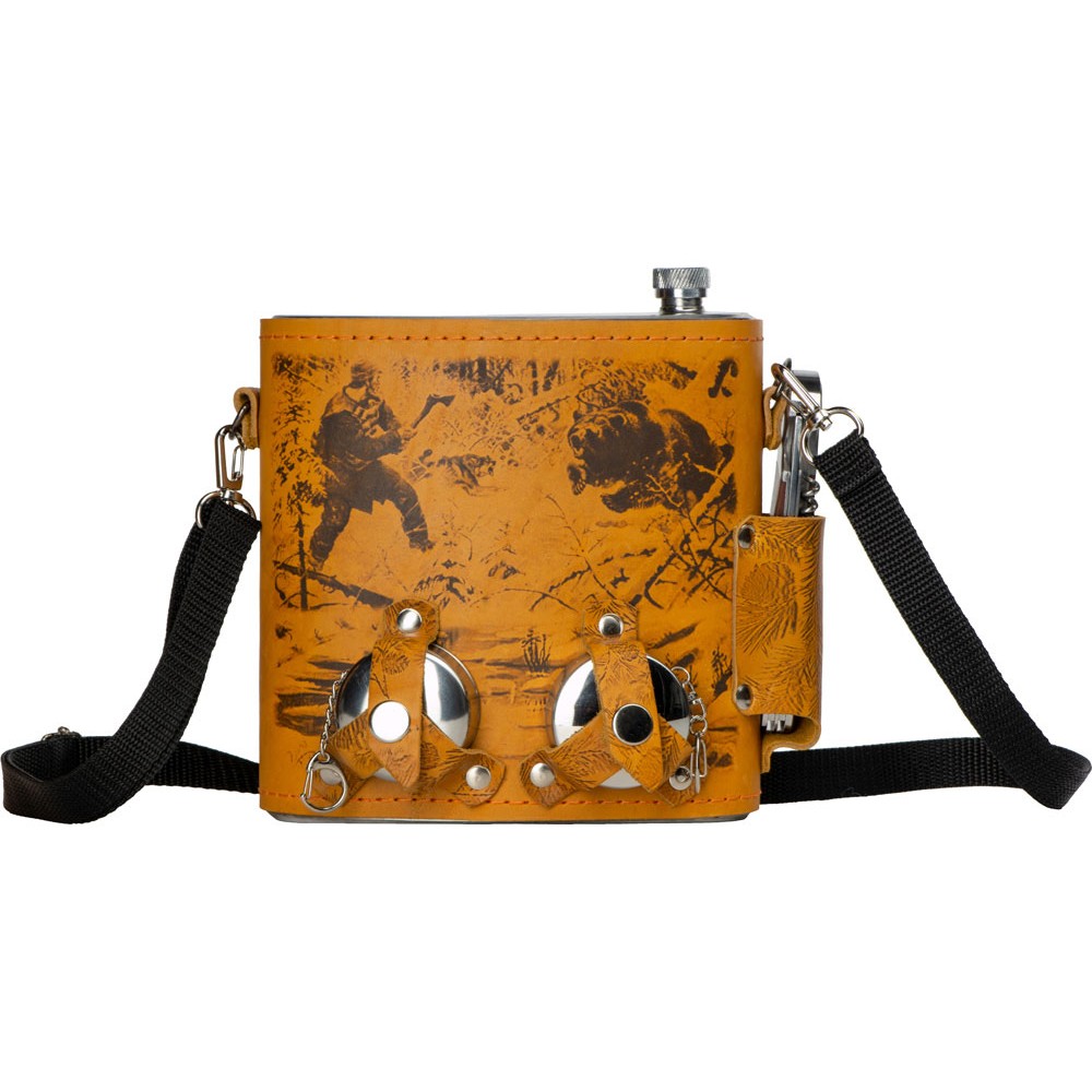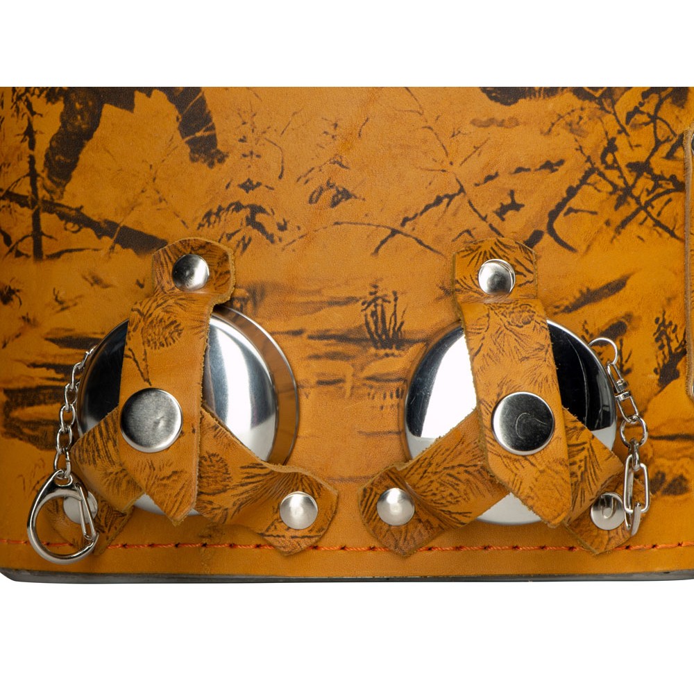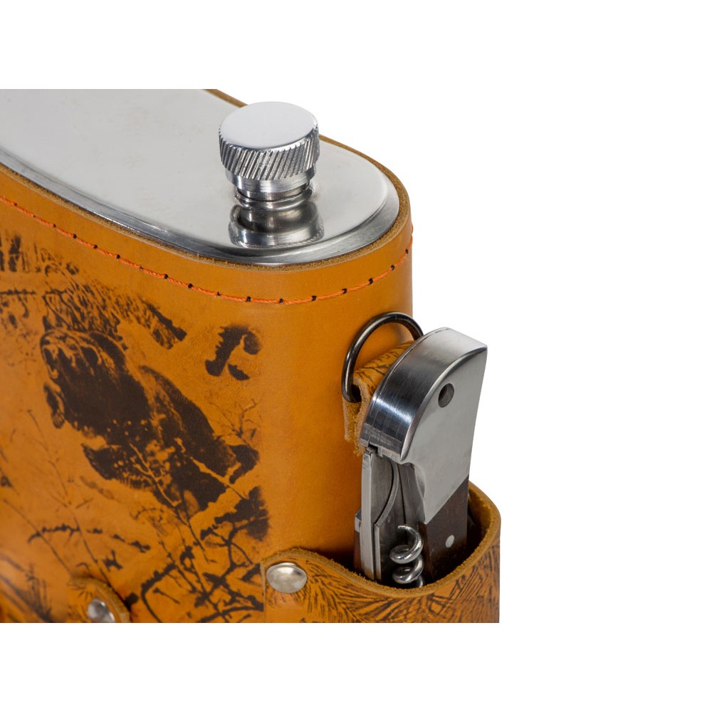 • Набор «Подарочный»: фляга 510/2(рыжая кожа), 1,5 л+ 2 стаканчика+нож