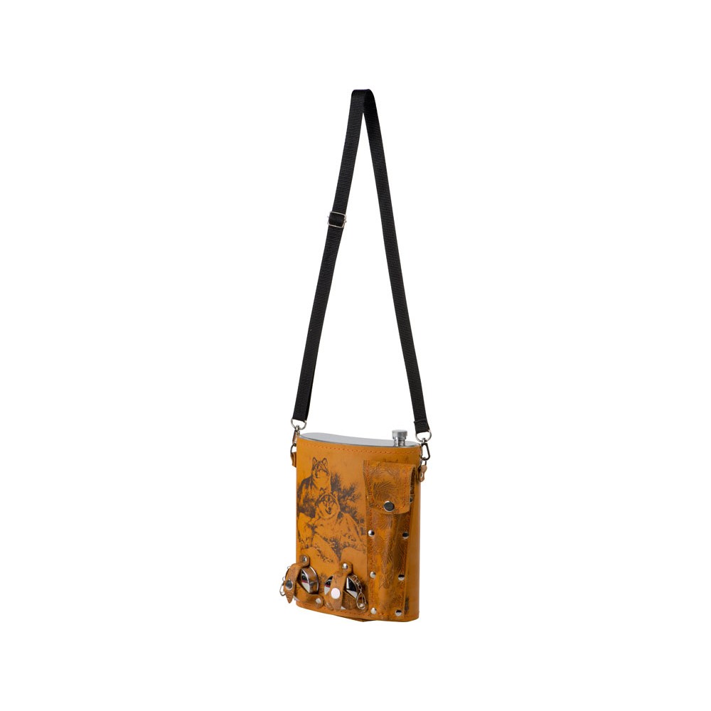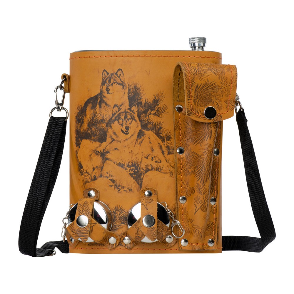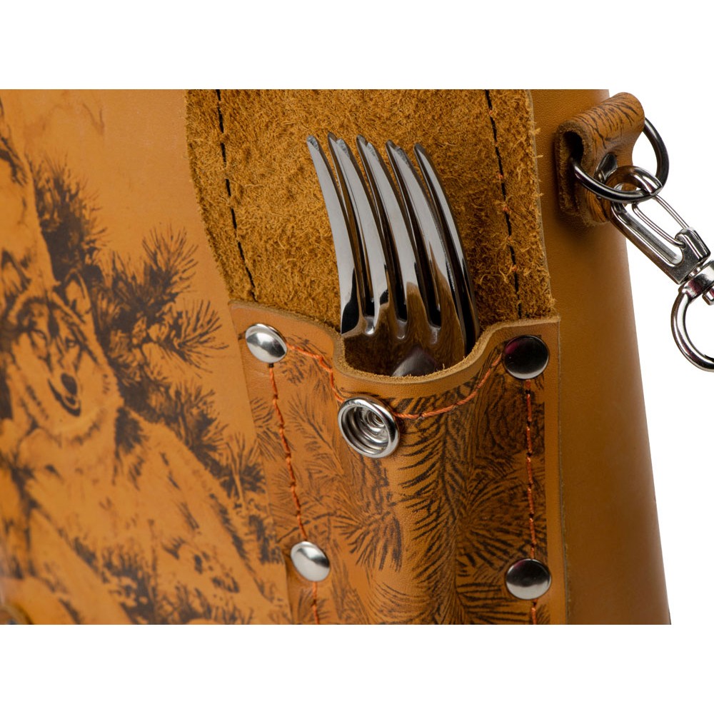 • Набор «Подарочный»: фляга 511/2 (рыжая кожа), 2л+2 стаканчика+2 вилки