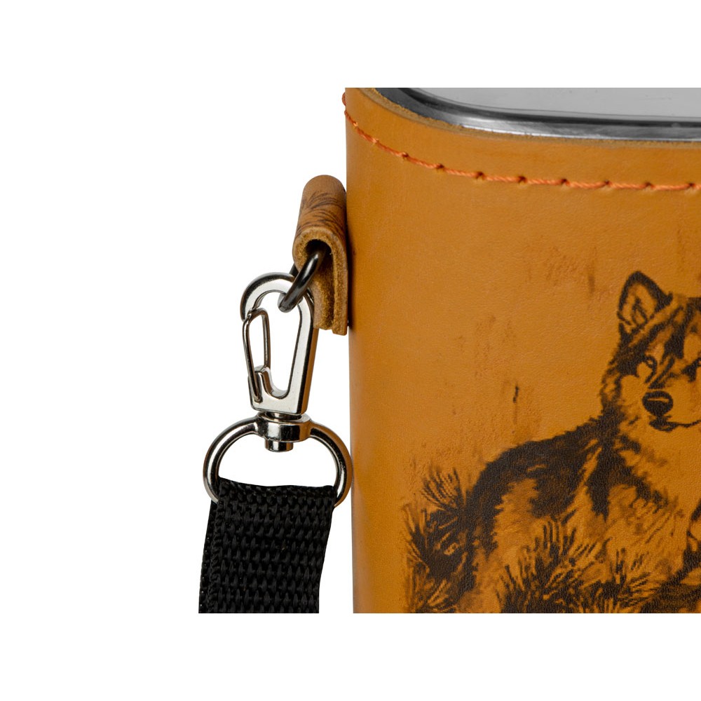 Фляга 2л в оплетке из натуральной кожи с нанесением рисунка методом художественного выжигания.