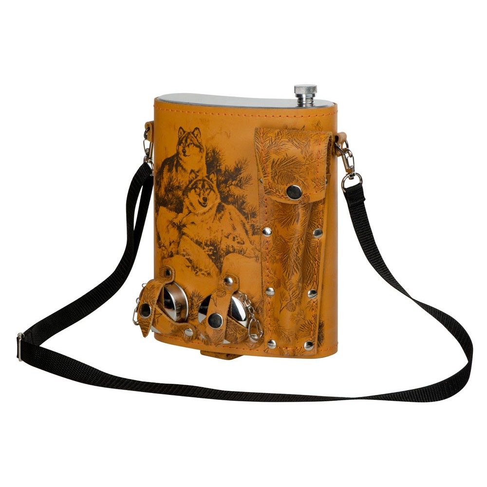 Технические характеристики Набор «Подарочный»: фляга 511/2 (рыжая кожа), 2л+2 стаканчика+2 вилки