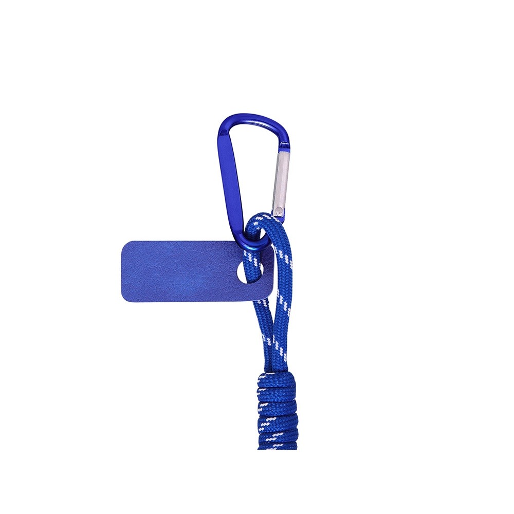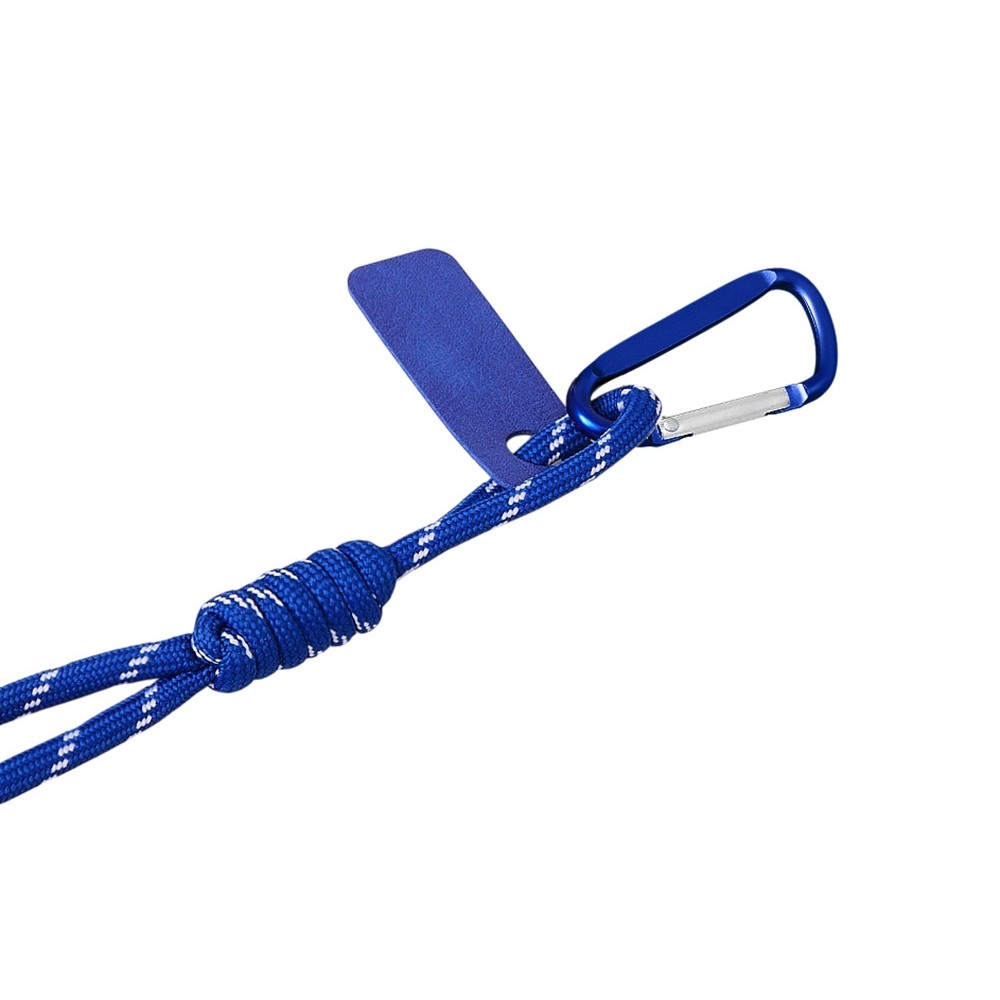 На складе Код товара: 685712 Брелок-веревочка "Austere" с карабином и кольцом, темно-синий с серебристым