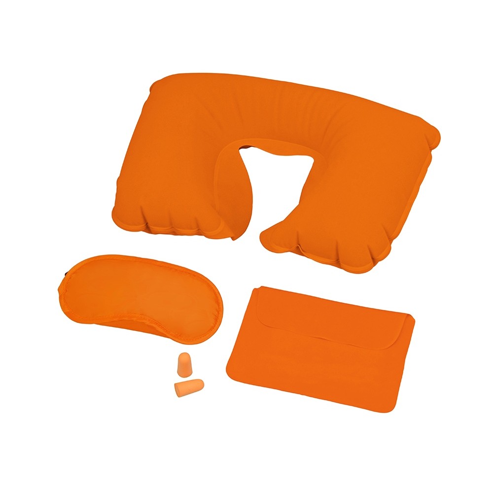 Замечательный дорожный набор включает в себя надувную подушку, маску на глаза и беруши, все это упаковано в специальный чехол. Приятная на ощупь поверхность набора обеспечит комфортный сон в любой обстановке.