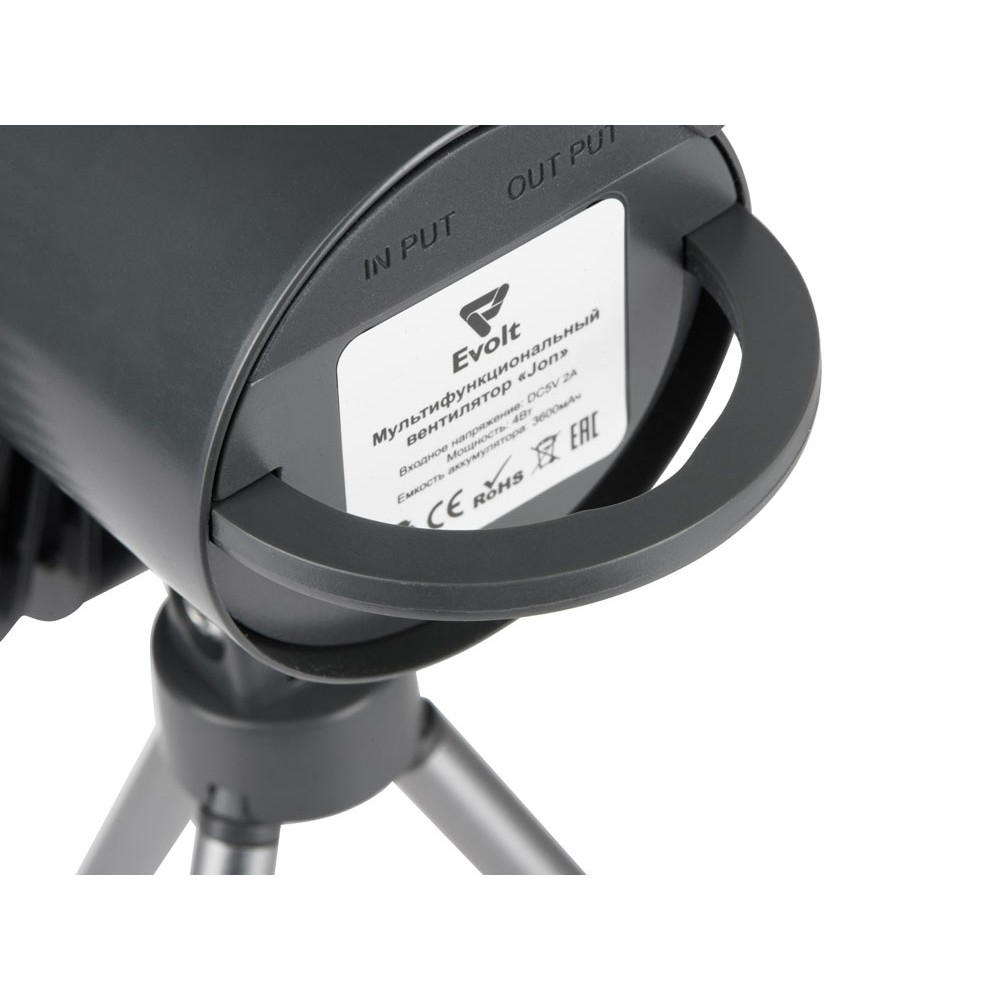 Ещё одна незаменимая функция для кэмпинга - возможность заряжать от вентилятора другие устройства (как от пауэрбанка), мощность аккумулятора - 3600 мА/ч.