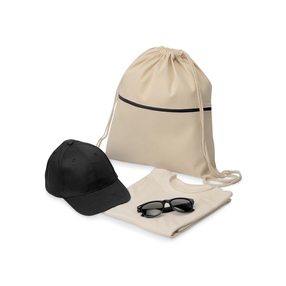 Цвет товара рюкзак- натуральный/черный, футболка- натуральный, бейсболка- черный, очки- черный