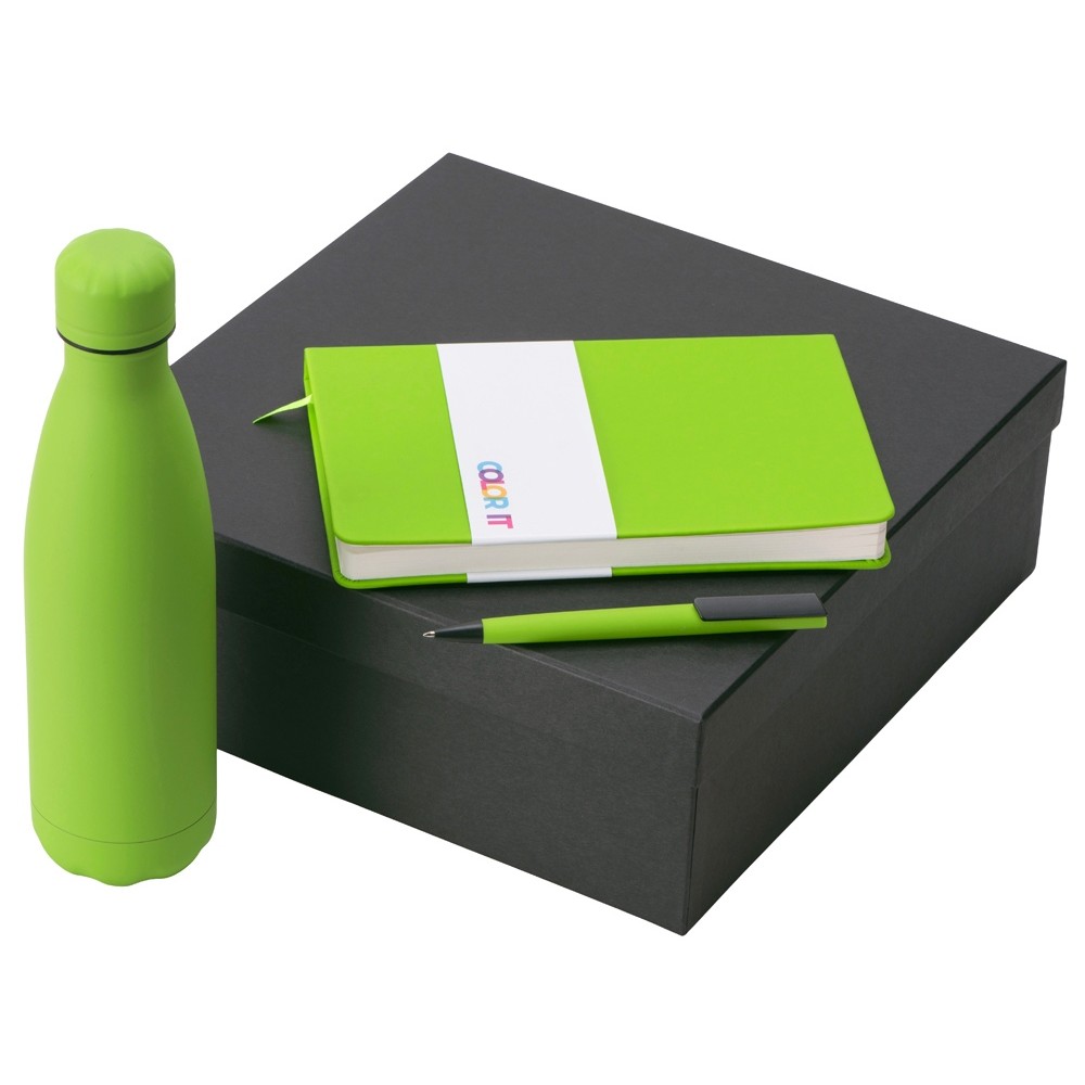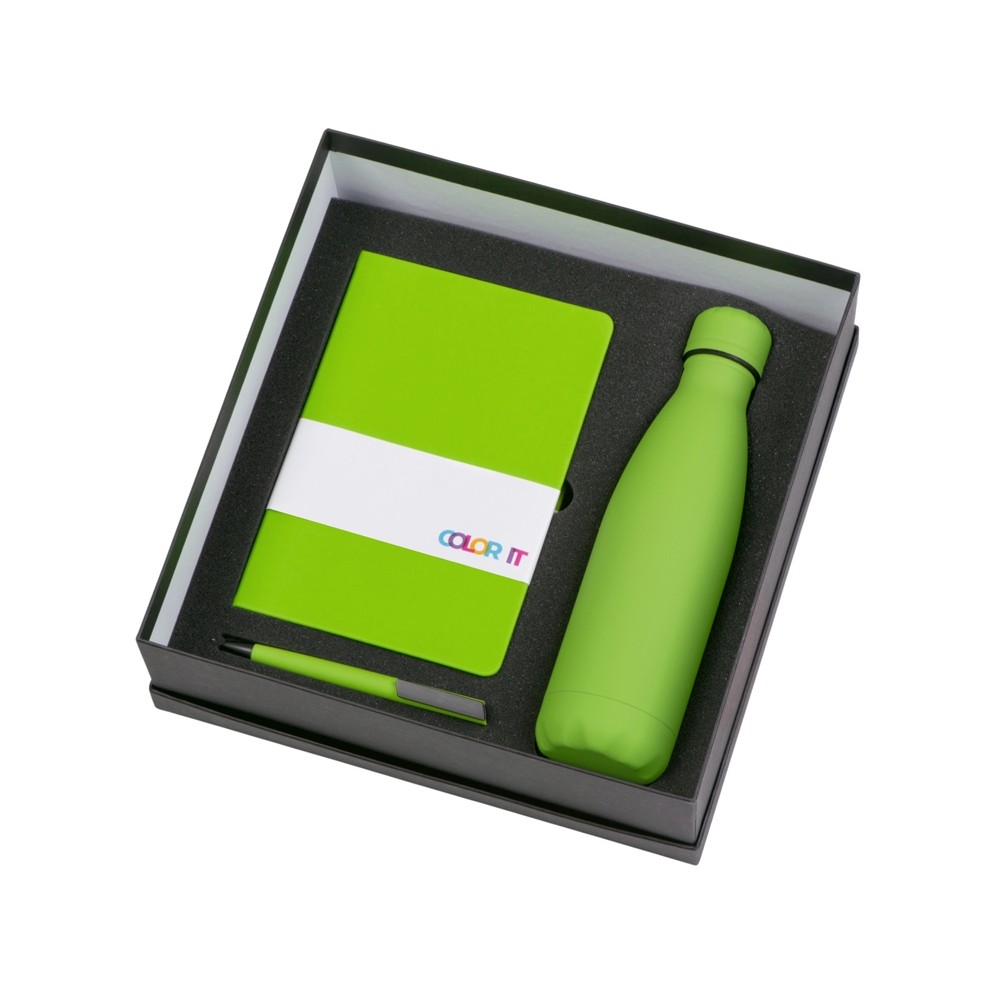 • Подарочный набор c блокнотом C2, ручкой и термобутылкой, зеленое яблоко
