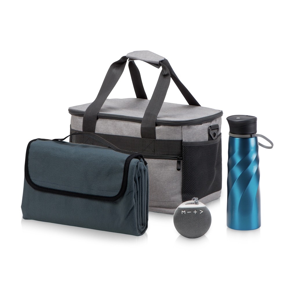 • Подарочный набор с пледом и колонкой в сумке - холодильнике " Musical trek", синий