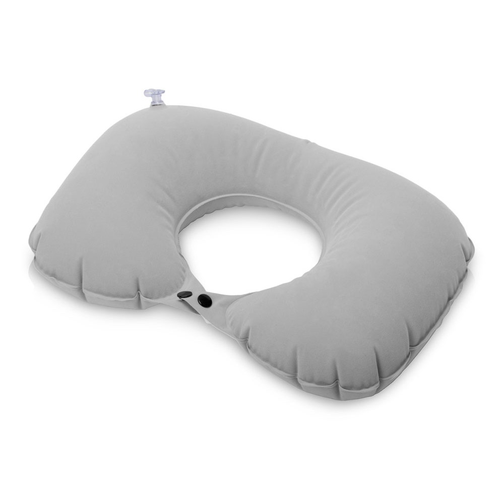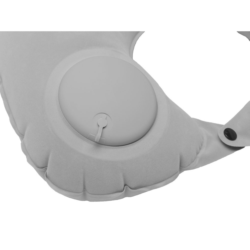 На обратной стороне от насоса-помпы находится клапан для сдувания воздуха из подушки. Двухуровневая фиксация кнопками позволит выбрать наиболее комфортное положение на шее. В комплекте идет чехол на завязках для хранения и удобной транспортировки.