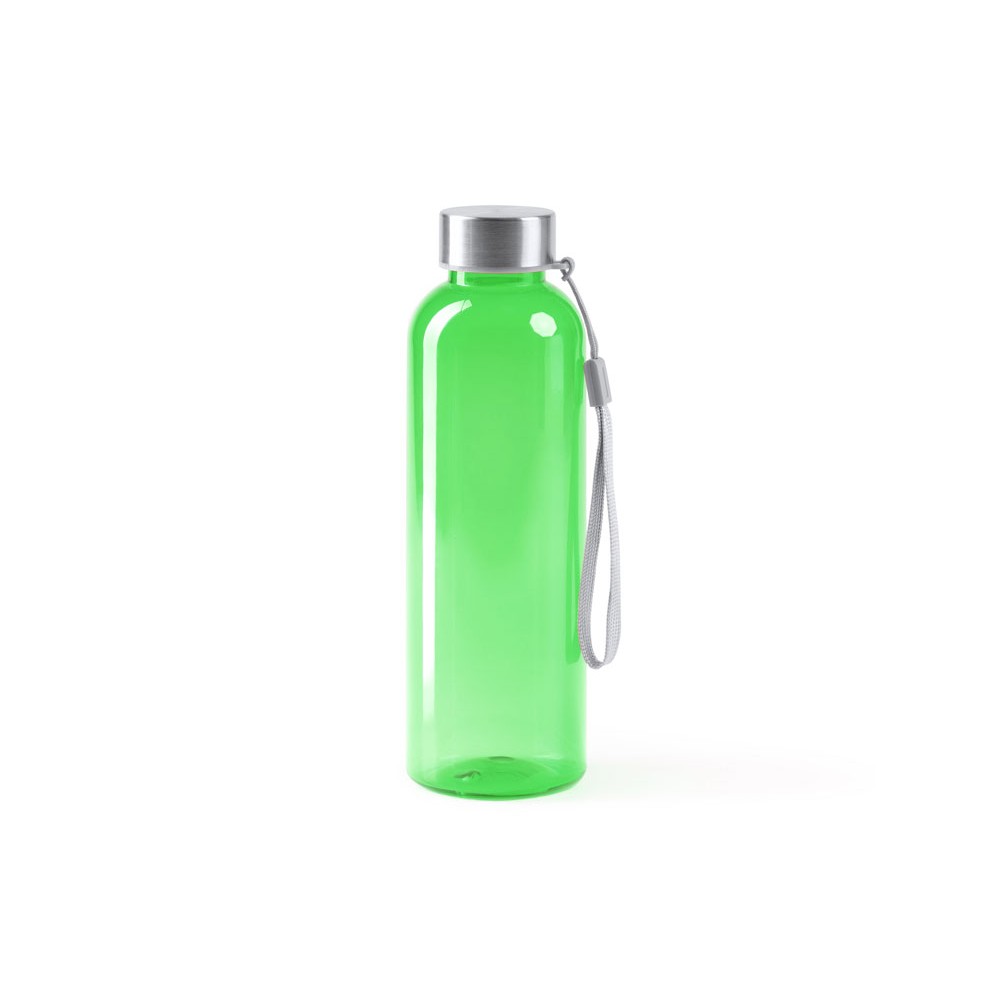Бутылка из РПЭТ с полупрозрачным цветным корпусом. Емкость 600 мл. Ремешок для переноски в комплекте