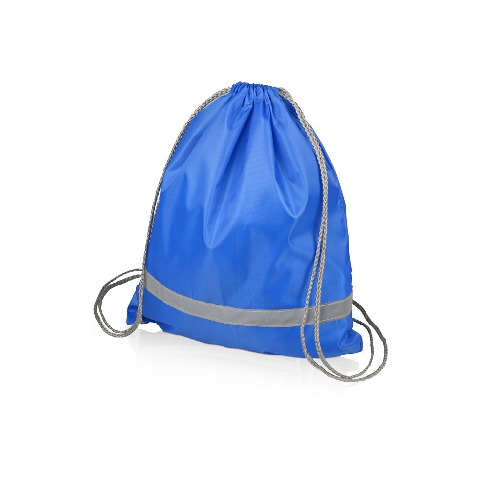 Рюкзак-мешок со светоотражающей полосой и серыми шнурками.