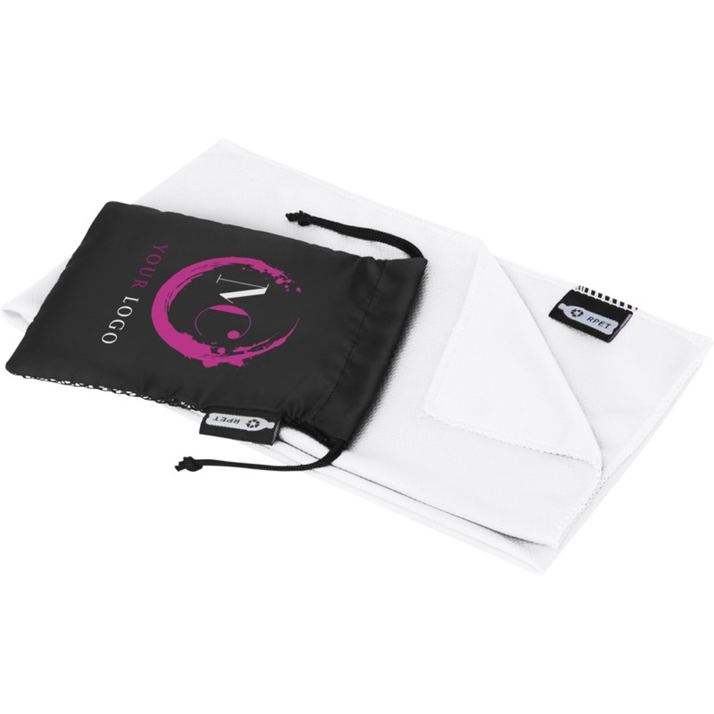 • Спортивное охлаждающее полотенце Raquel из переработанного ПЭТ в мешочке, белый