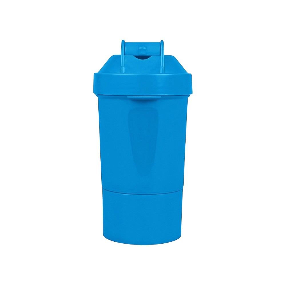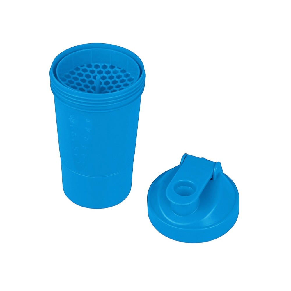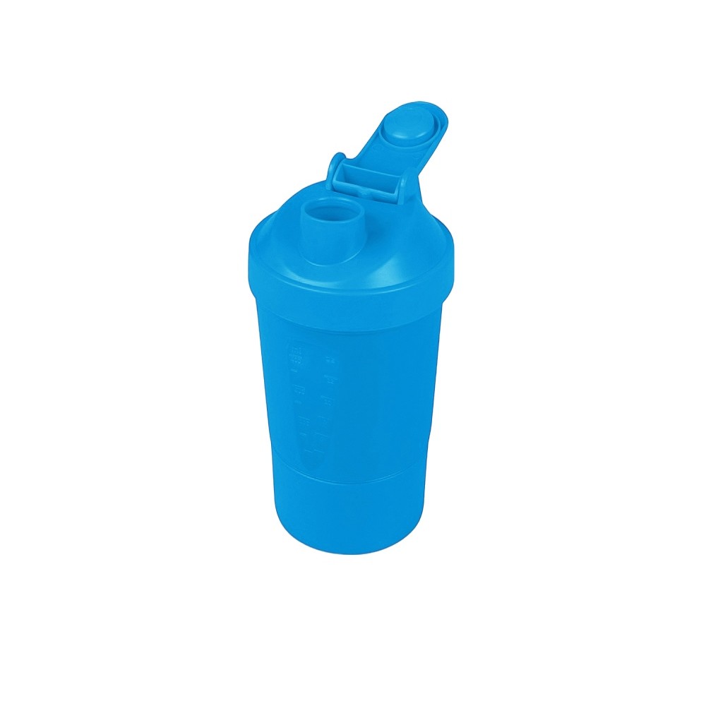 Шейкер для спортивного питания - это один из необходимых аксессуаров для спортсменов и людей, ведущих активный образ жизни. В нем можно приготовить протеиновый коктейль или фруктовый напиток. Шейкер классической формы, он удобно лежит в руке, к донышку прикручивается емкость для смешивания (таблетница), в которой можно хранить спортивные добавки: протеиновый порошок, витамины и другие концентраты. Внутри колбы имеется пластиковая сетка, чтобы процеживать спортивный напиток, а также металлический размешиватель, который растворяет порошок в напитке без комочков. Объем - 400мл. Шейкер изготовлен из пищевого пластика, он герметичен и легко моется.