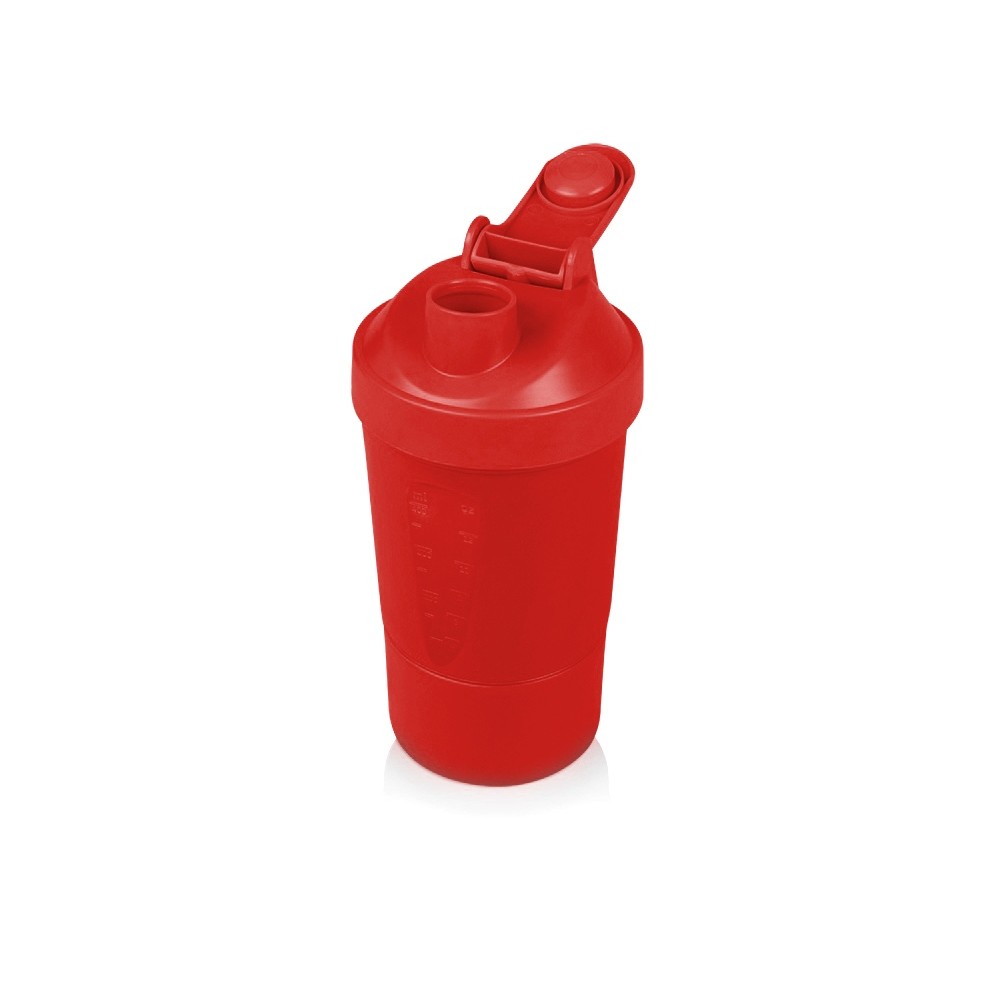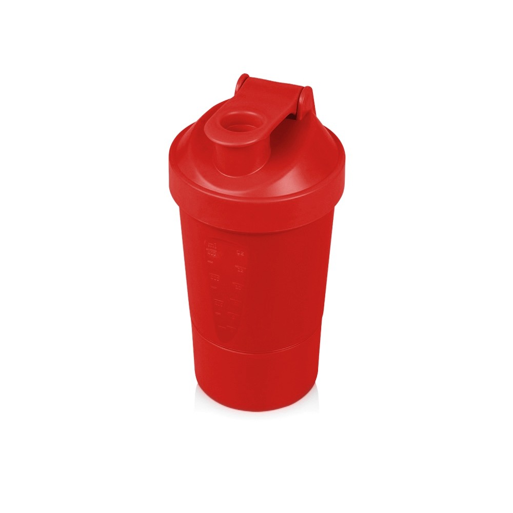 Шейкер для спортивного питания - это один из необходимых аксессуаров для спортсменов и людей, ведущих активный образ жизни. В нем можно приготовить протеиновый коктейль или фруктовый напиток. Шейкер классической формы, он удобно лежит в руке, к донышку прикручивается емкость для смешивания (таблетница), в которой можно хранить спортивные добавки: протеиновый порошок, витамины и другие концентраты. Внутри колбы имеется пластиковая сетка, чтобы процеживать спортивный напиток, а также металлический размешиватель, который растворяет порошок в напитке без комочков. Объем - 400мл. Шейкер изготовлен из пищевого пластика, он герметичен и легко моется.