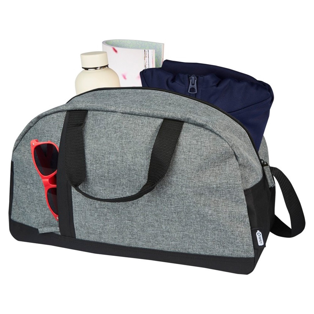 Двухцветная спортивная сумка Reclaim, снаружи изготовленная из 100% переработанных материалов по стандарту GRS, имеет вертикальный передний карман на молнии и просторное основное отделение на молнии. Обернутые лямками ручки для переноски и регулируемые плечевые ремни обеспечивают комфорт при переноске, что делает сумку идеальным вариантом для занятий спортом.