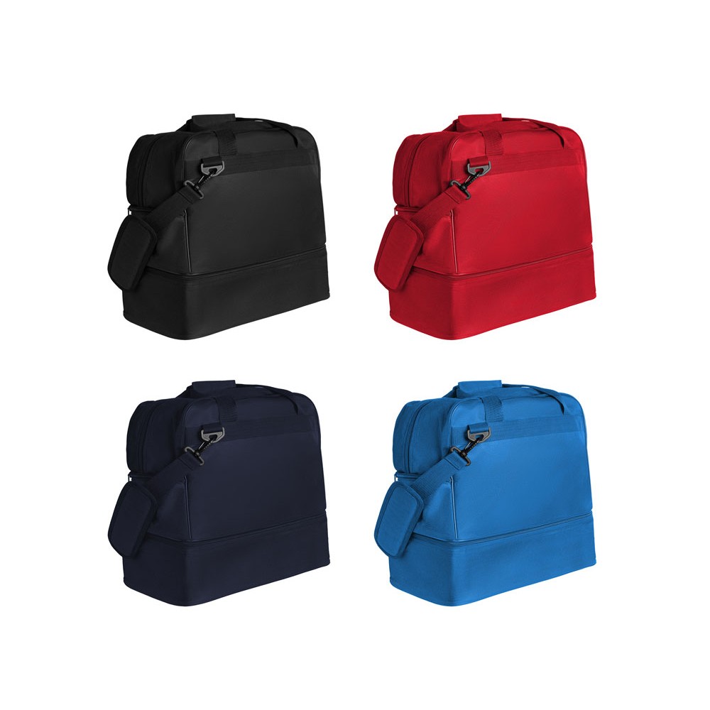 Спортивная сумка с двойной ручкой и длинным регулируемым ремнем для переноски. Основной карман с двойным бегунком. Отделение для обуви. Защита от влаги. Жесткое дно. Легкая очистка. Объем 53 литра.