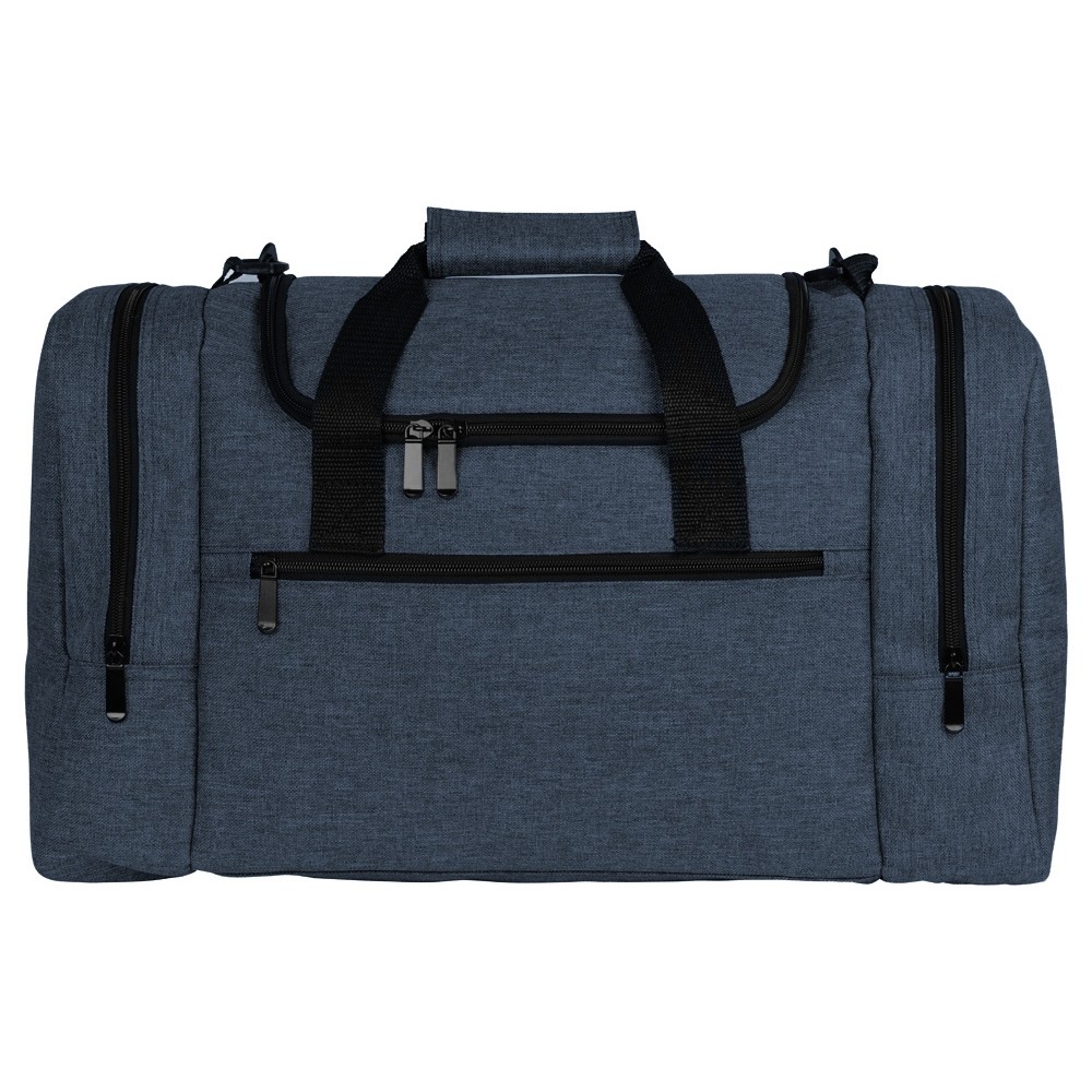 Удобная и прочная сумка для путешествий или походов в спортзал. Два вместительных больших кармана на молниях по бокам и один спереди. Сумка сделана из плотной долговечной ткани. Ремень на плечо отстегивается и регулируется по длине.