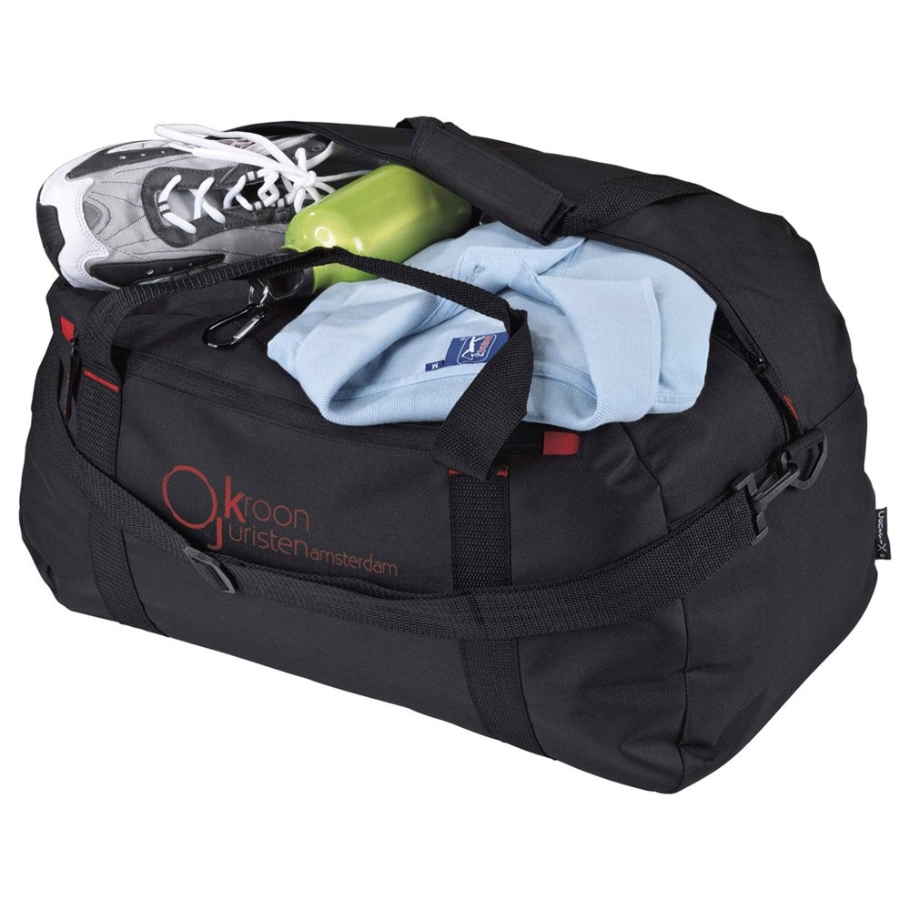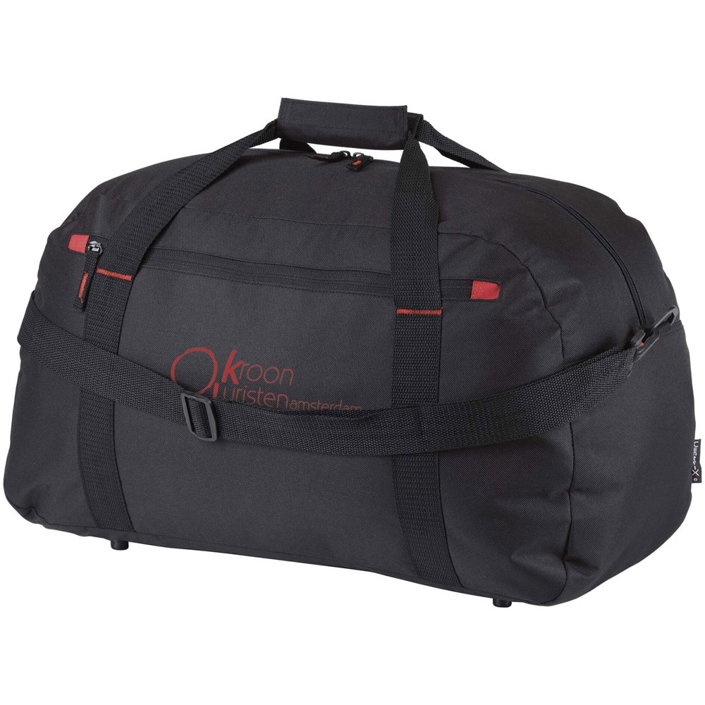Дорожная сумка "Vancouver". Большая дорожная сумка с красным элементом отделки, передним карманом на молнии и регулируемым плечевым ремнем.