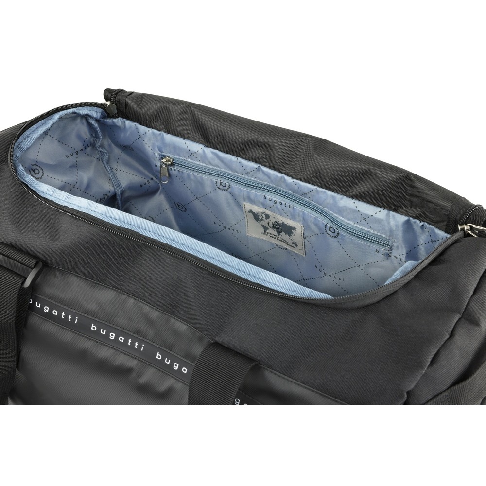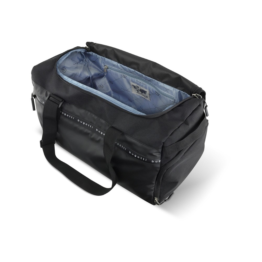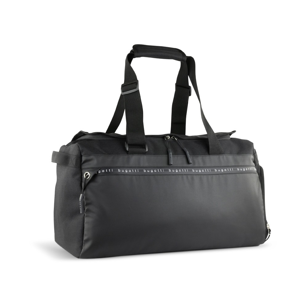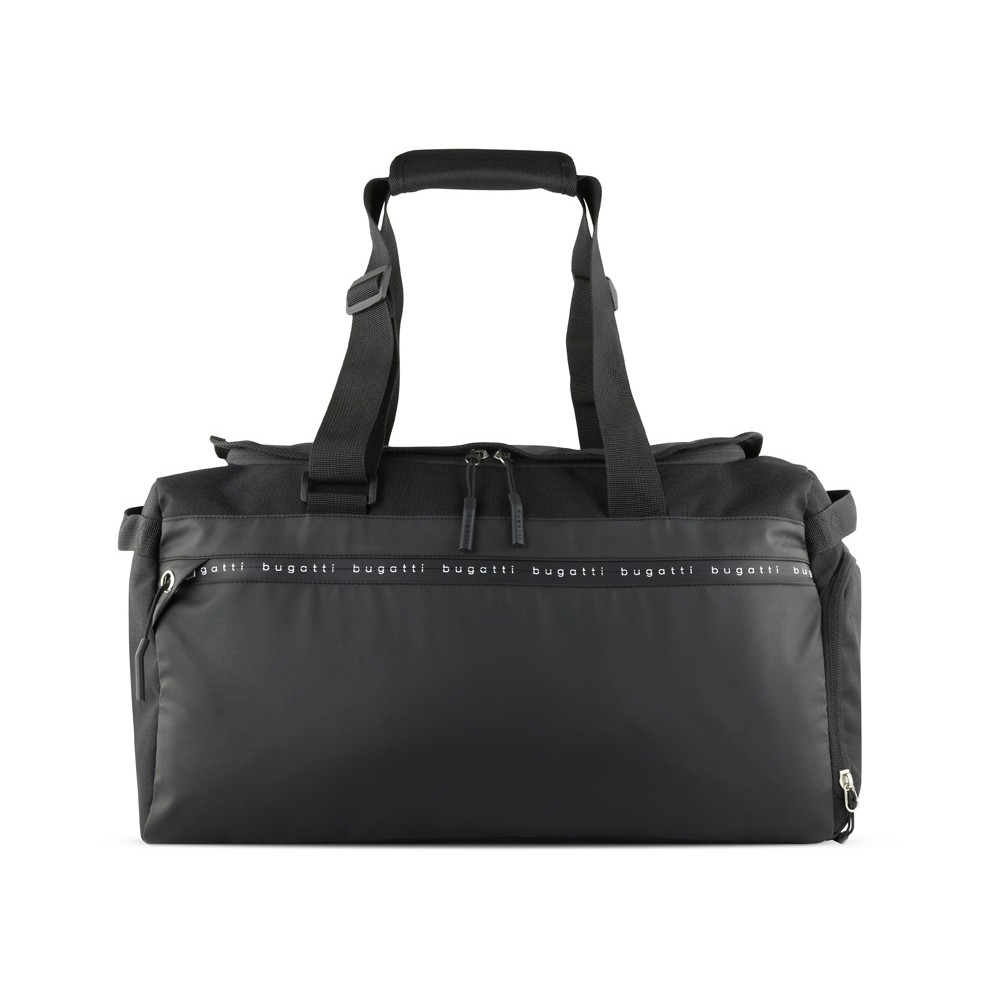 • Сумка спортивная BUGATTI БЛАНК ОБЛЕГЧЕННАЯ | BLANC DELIGHT, чёрная, нейлон RPET600D/тарпаулин/полиэстер, 47х23х28 см, 22 л