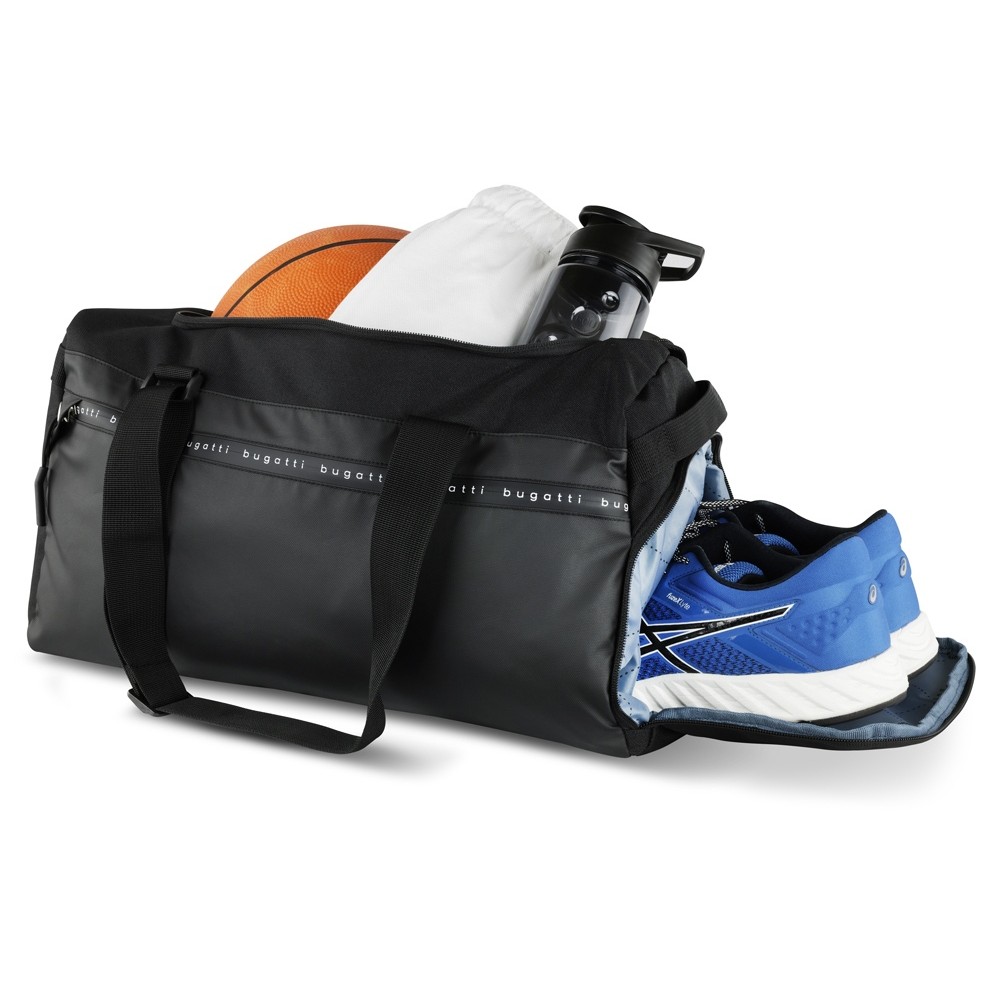 Сумка спортивная BUGATTI БЛАНК ОБЛЕГЧЕННАЯ | BLANC DELIGHT, чёрная, нейлон RPET600D/тарпаулин/полиэстер, 47х23х28 см, 22 л