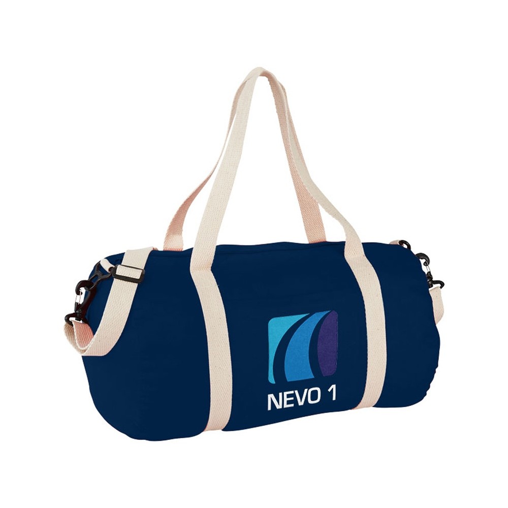 Хлопковая сумка Barrel Duffel. Большое основное отделение на молнии. Карман спереди. Высота ручек 29,5 см. Отстегивающийся регулируемый плечевой ремень. Хлопок парусина 170 г/м2.