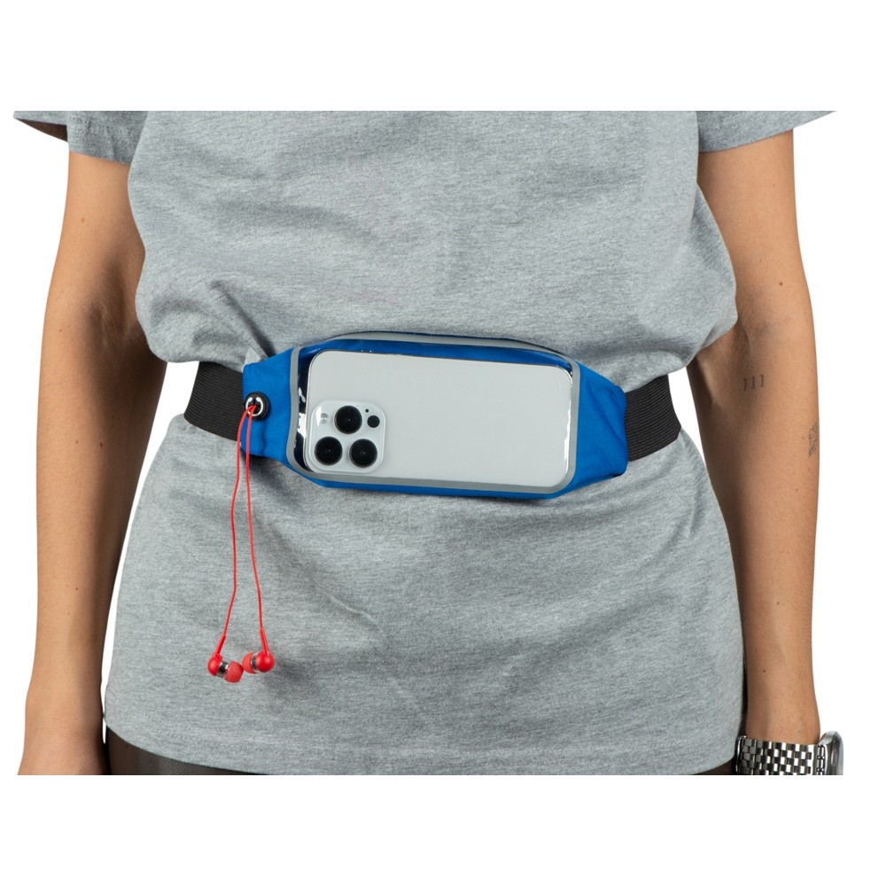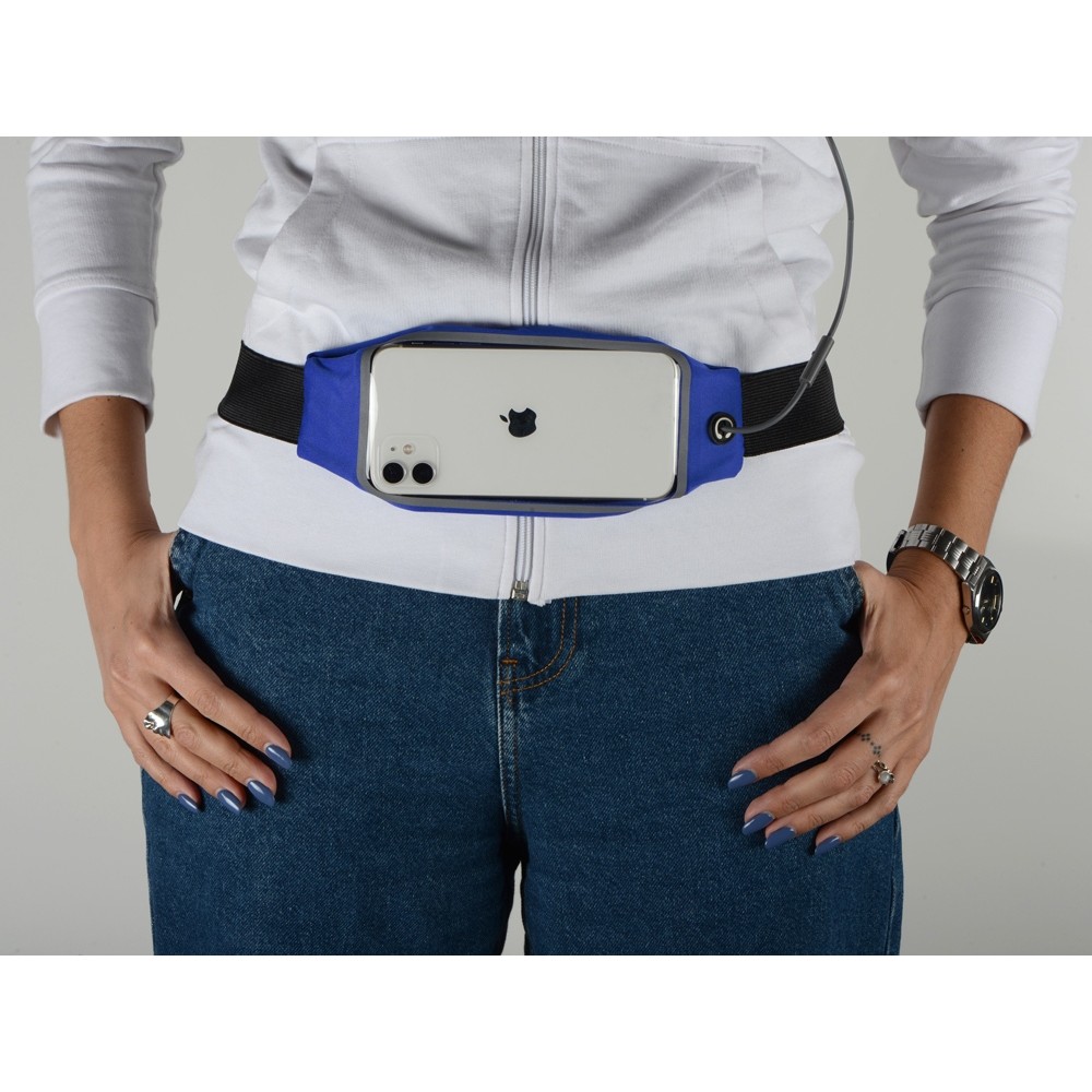 Сумка на пояс с отделением для смартфона размером до 16 х 8 см и выходом для наушников.