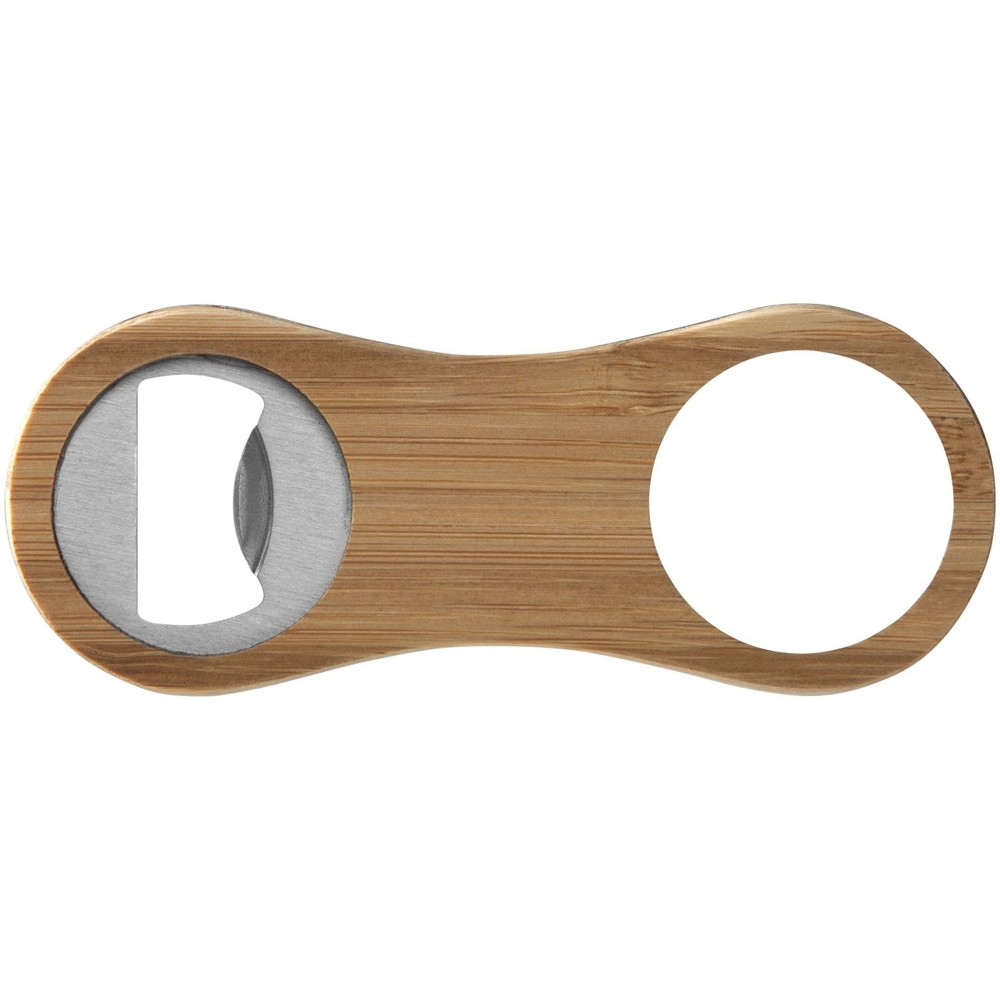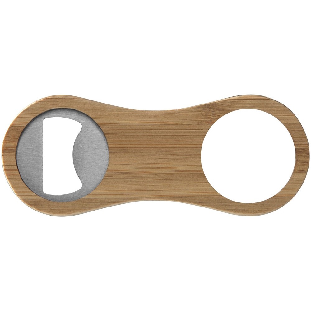 Бамбуковая открывалка для бутылок Barron. Открывалка для бутылок, изготовленная из прочного бамбукового материала с логотипом по середине. Бамбук и нержавеющая сталь.