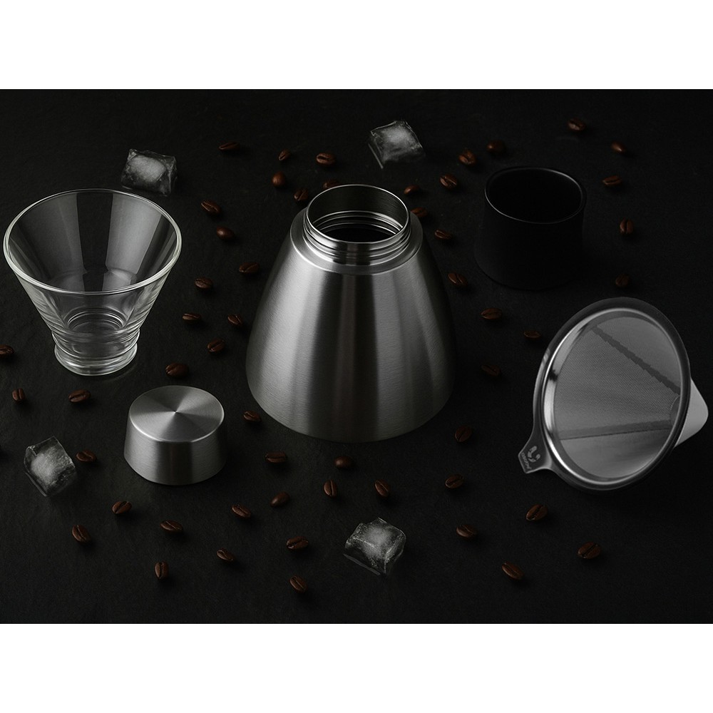 Кофеварка состоит из емкости, куда попадает приготовленный кофе, уже упомянутого сетчатого фильтра из нержавеющей стали, и воронки из термостойкого боросиликатного стекла, в которую фильтр вставляется. Конструкция кофеварки полностью разборная, ее легко мыть, сушить и разбирать.