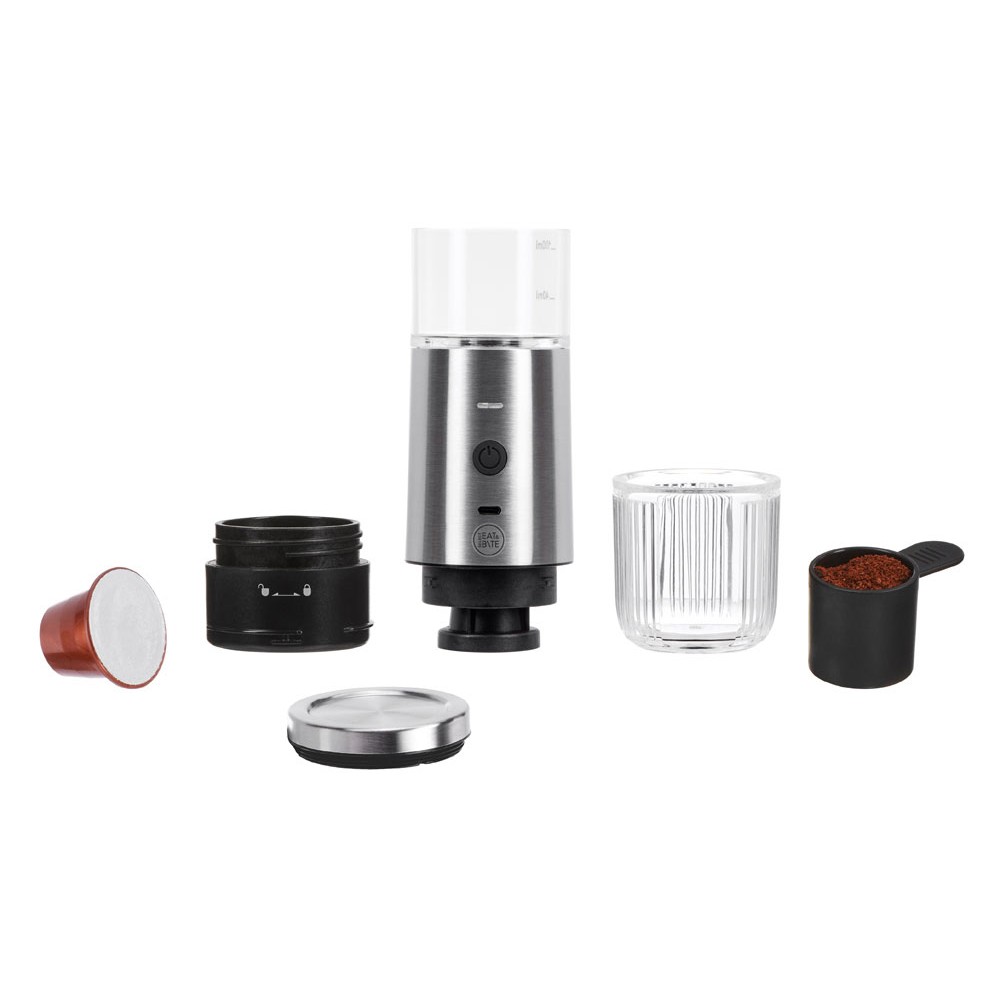 Вес620 Емкость элемента2000 mAh Комплектностьустройство, съемная батарея, кабель USB-Type C, фильтры для капсульного и молотого кофе, инструкция