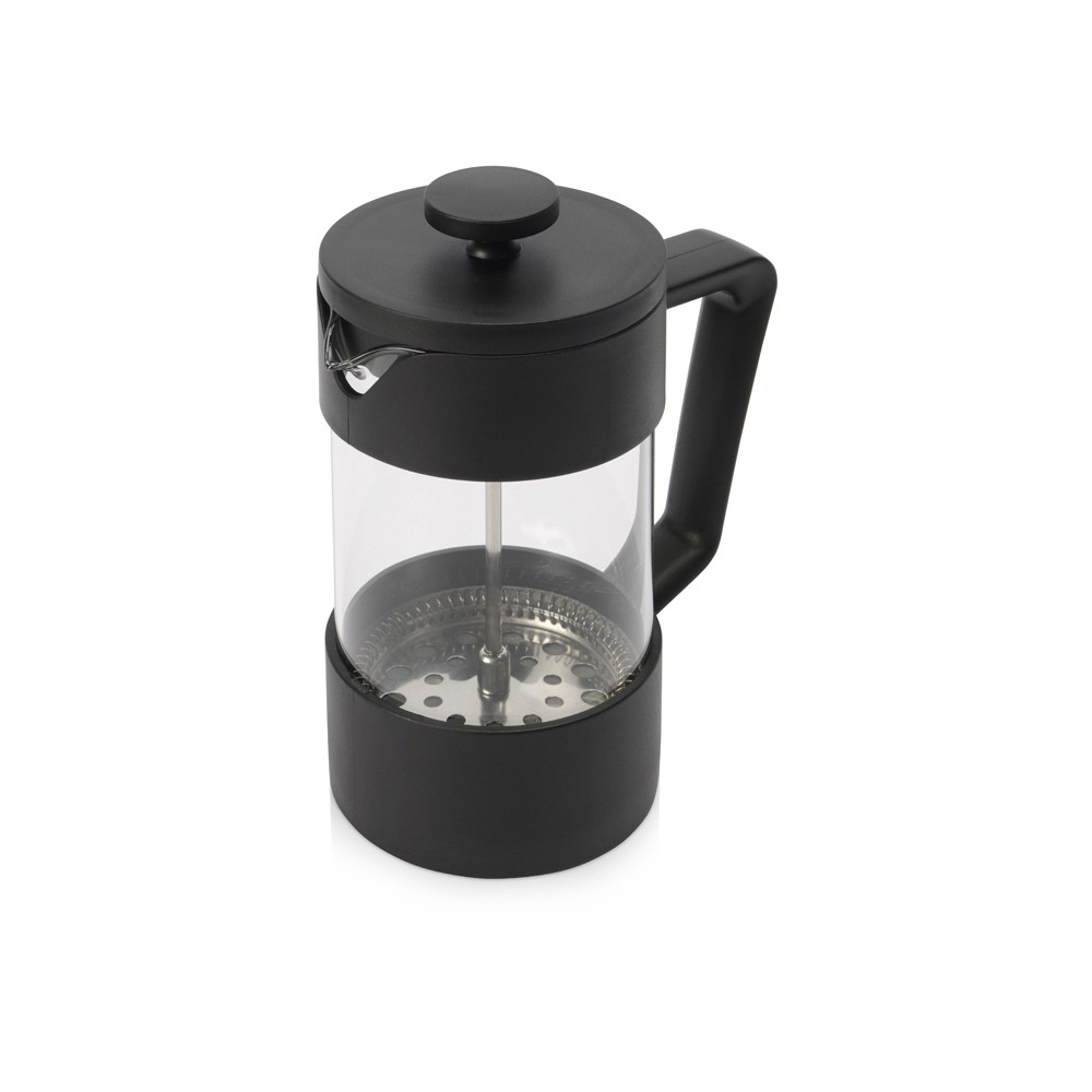 Материал товара френч-пресс- боросиликатное стекло, нержавеющая сталь, пластик, кружка- боросиликатное стекло