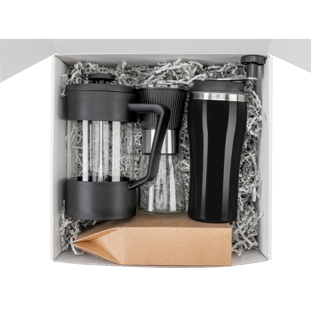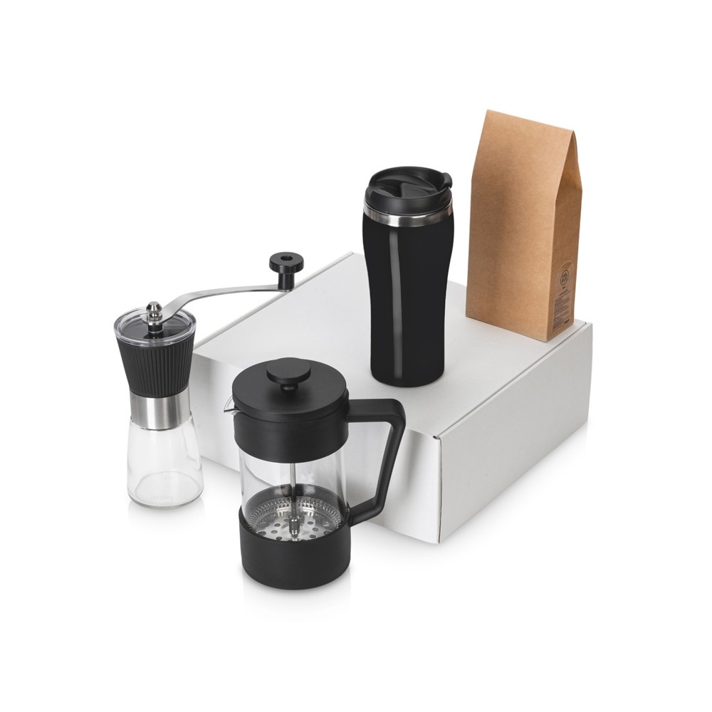 Подарочный набор с кофе, кружкой и френч-прессом "Бодрое утро" 2.0, черный