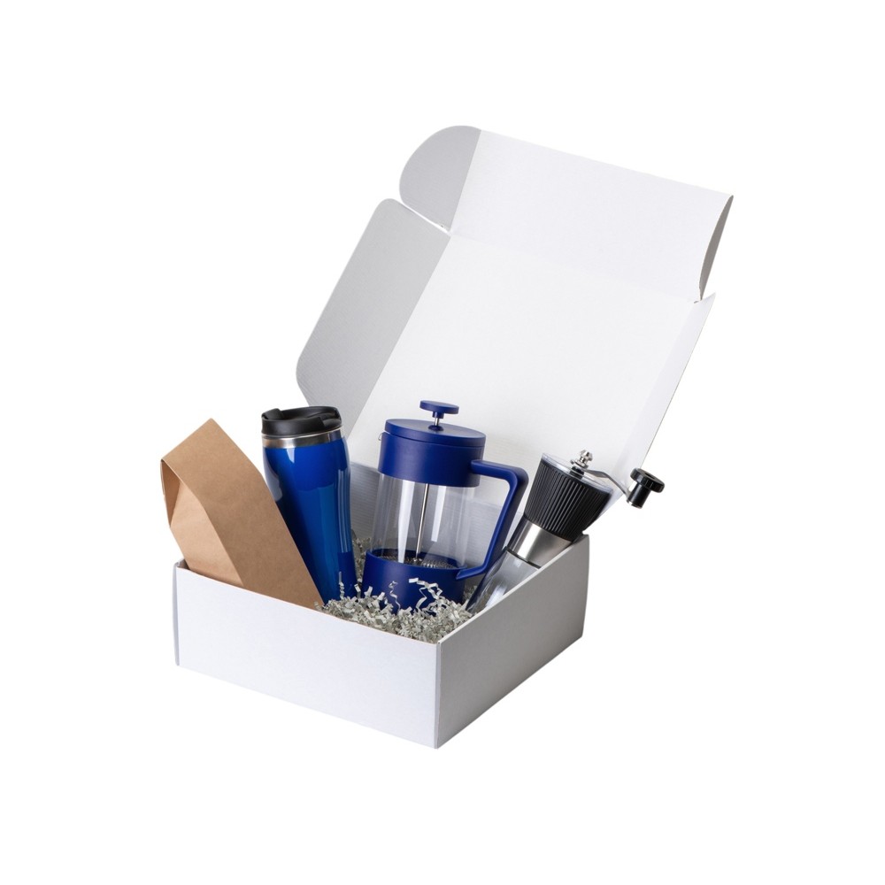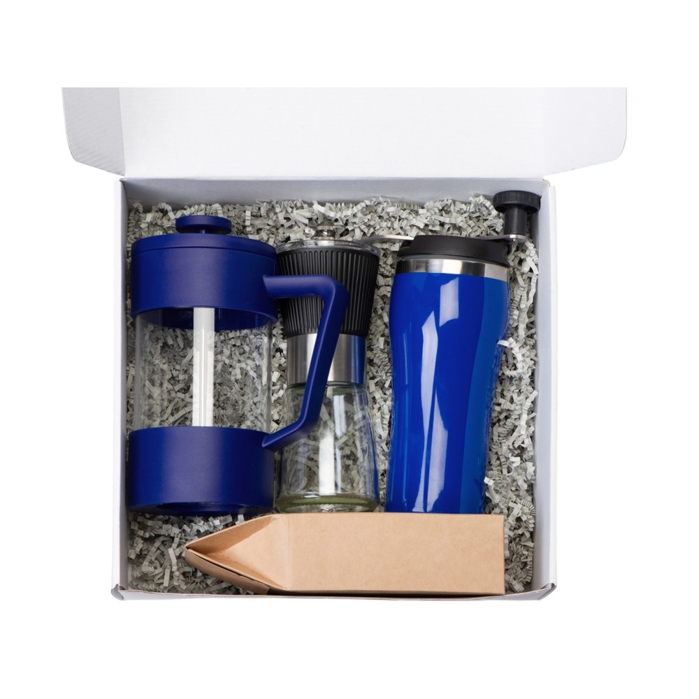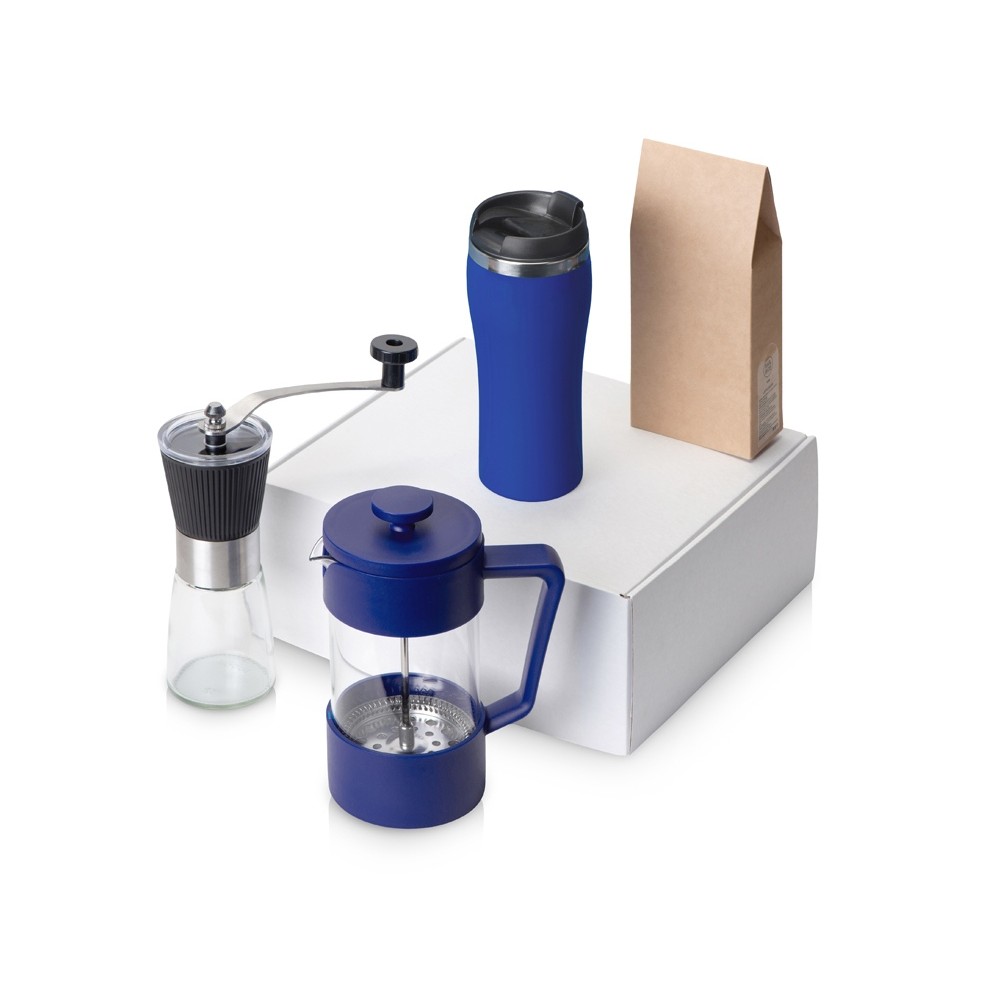 Подарочный набор с кофе, кружкой и френч-прессом "Бодрое утро" 2.0, синий