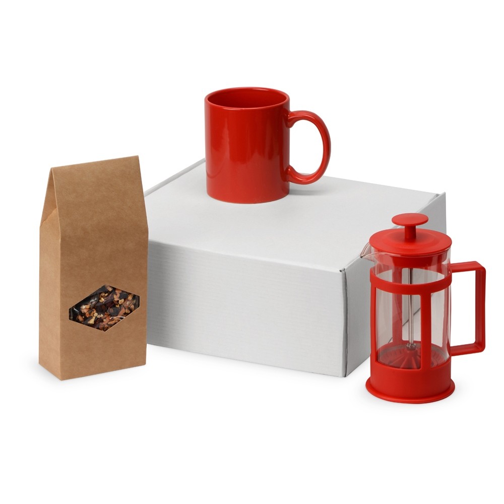 Подарочный набор с чаем, кружкой и френч-прессом "Чаепитие", красный