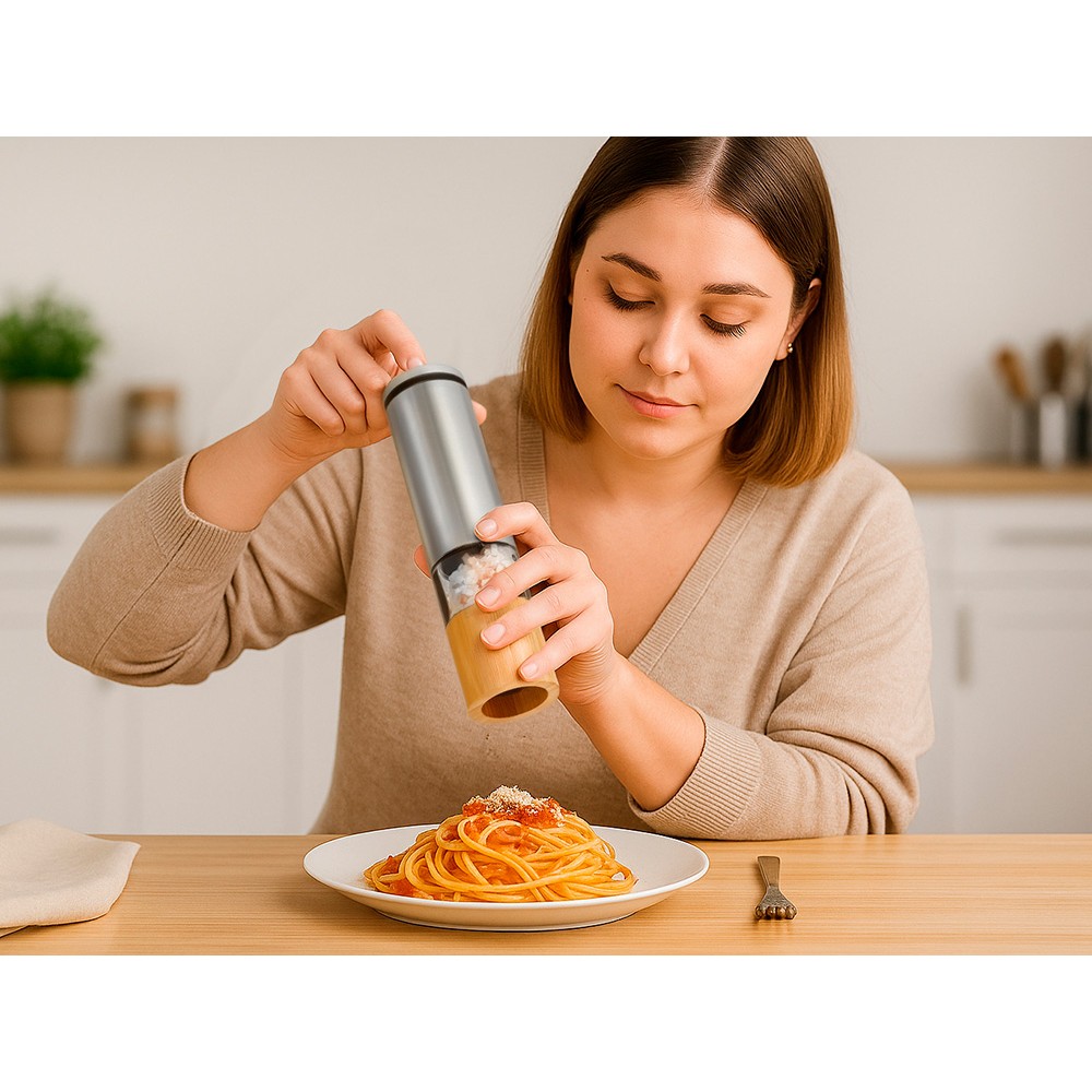 Электрическая мельница для специй «Clove» из нержавеющей стали и бамбука: стиль и удобство на вашей кухне!