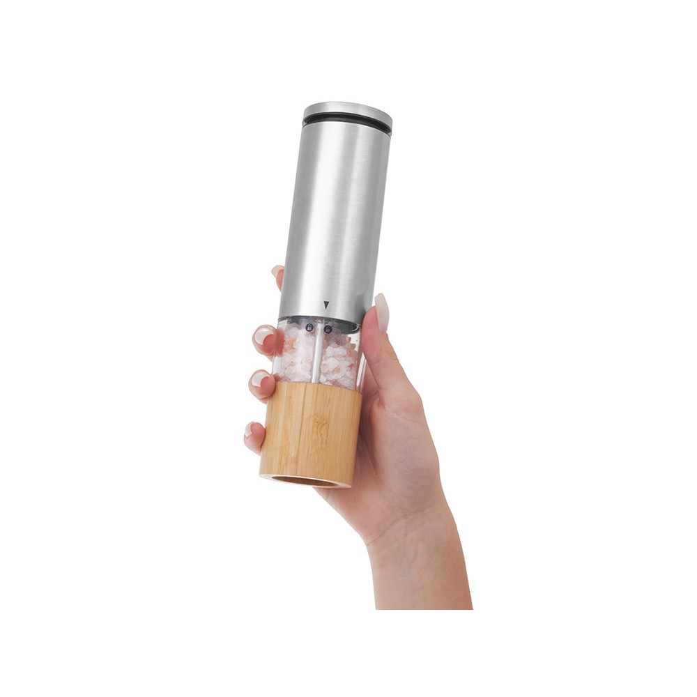 Элегантный и практичный корпоративный подарок, который добавит вкуса в любую кухню — электрическая мельница для специй, сочетающая трендовый дизайн и современную функциональность. Работает от 6 батареек AAA и легко справляется с солью, перцем и другими специями.