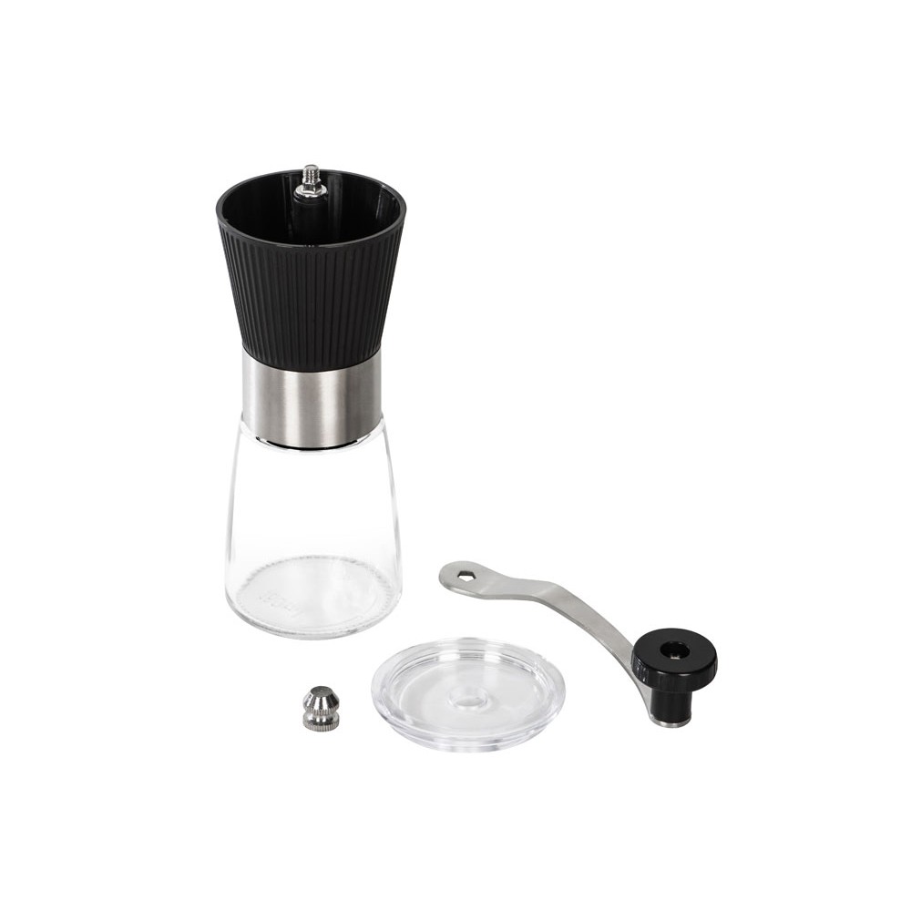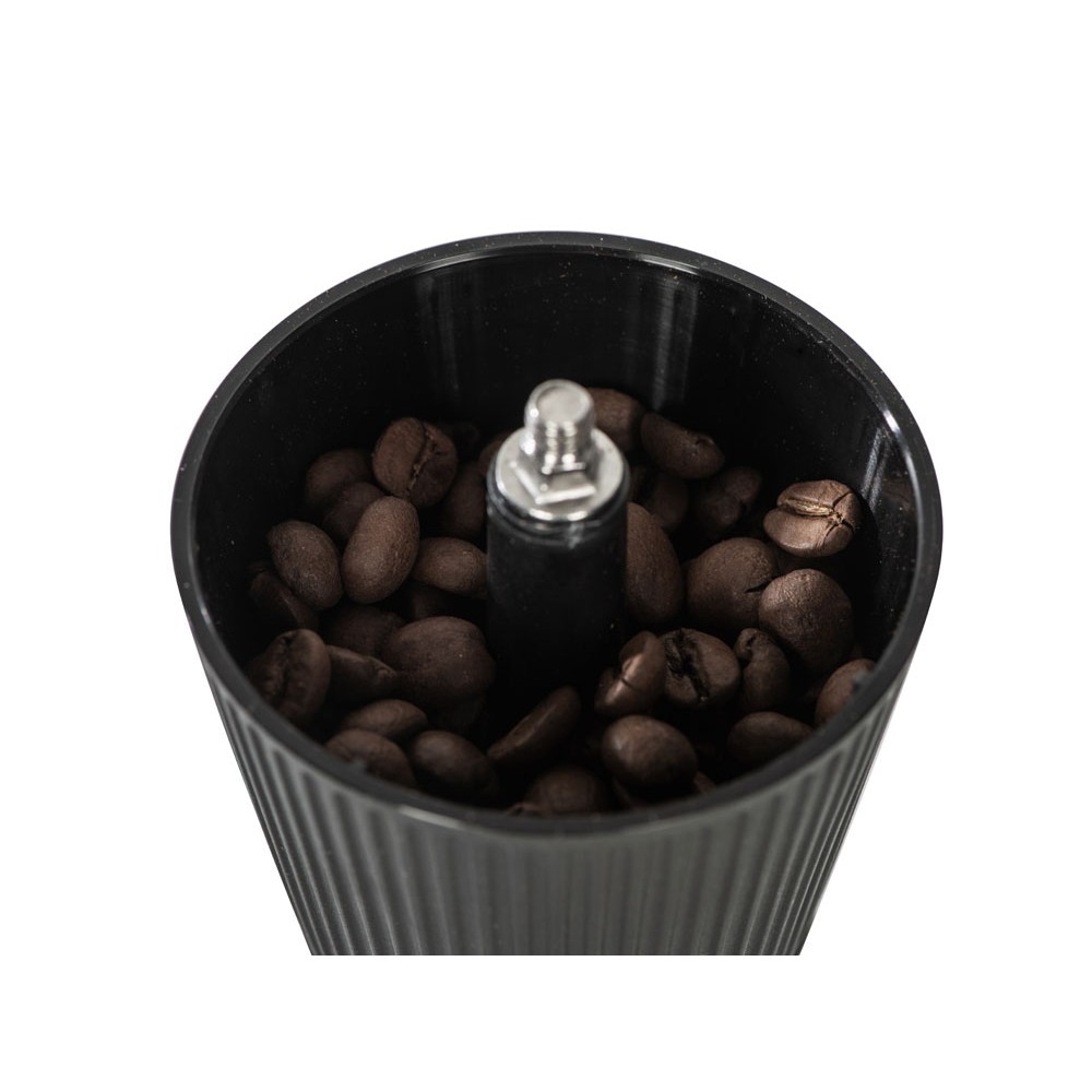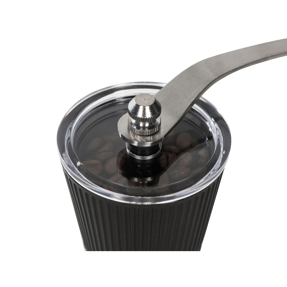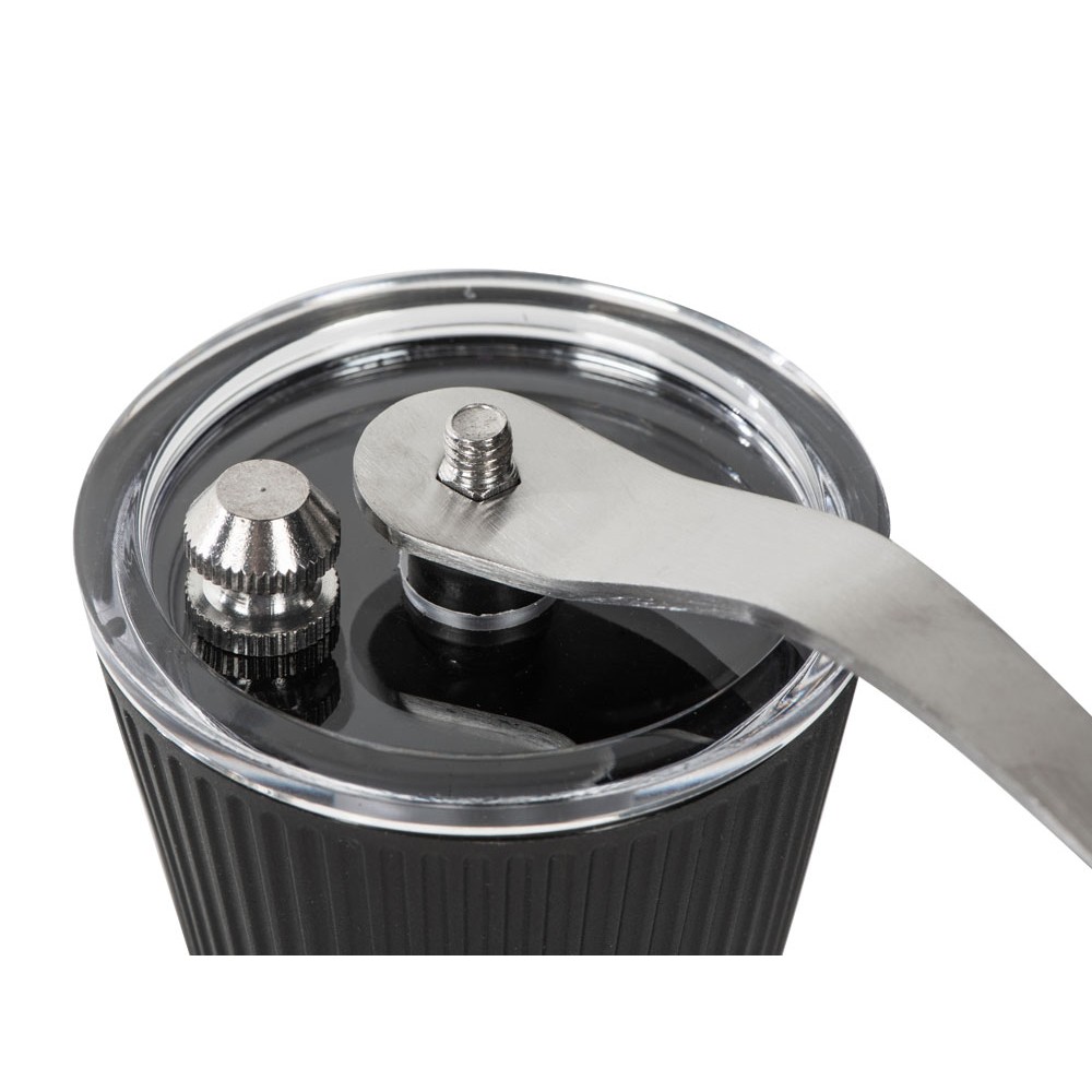 Удобная ручка делает процесс перемалывания простым, не требующим приложения большого количества сил, а рифленая поверхность верхнего резервуара — не дает ладоням скользить.