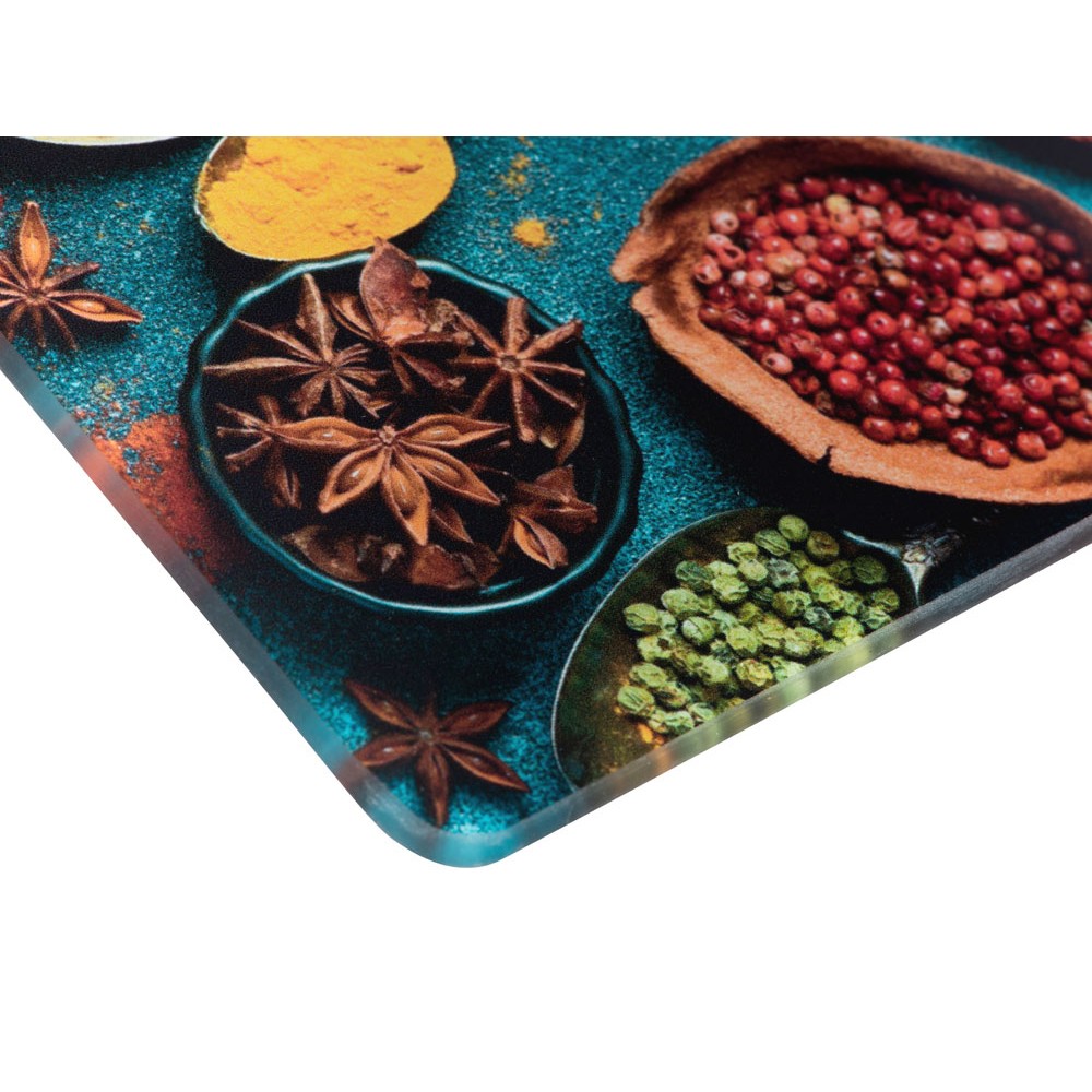 - доска выполнена из закаленного стекла - на такой можно разделывать продукты и не переживать, что доска треснет