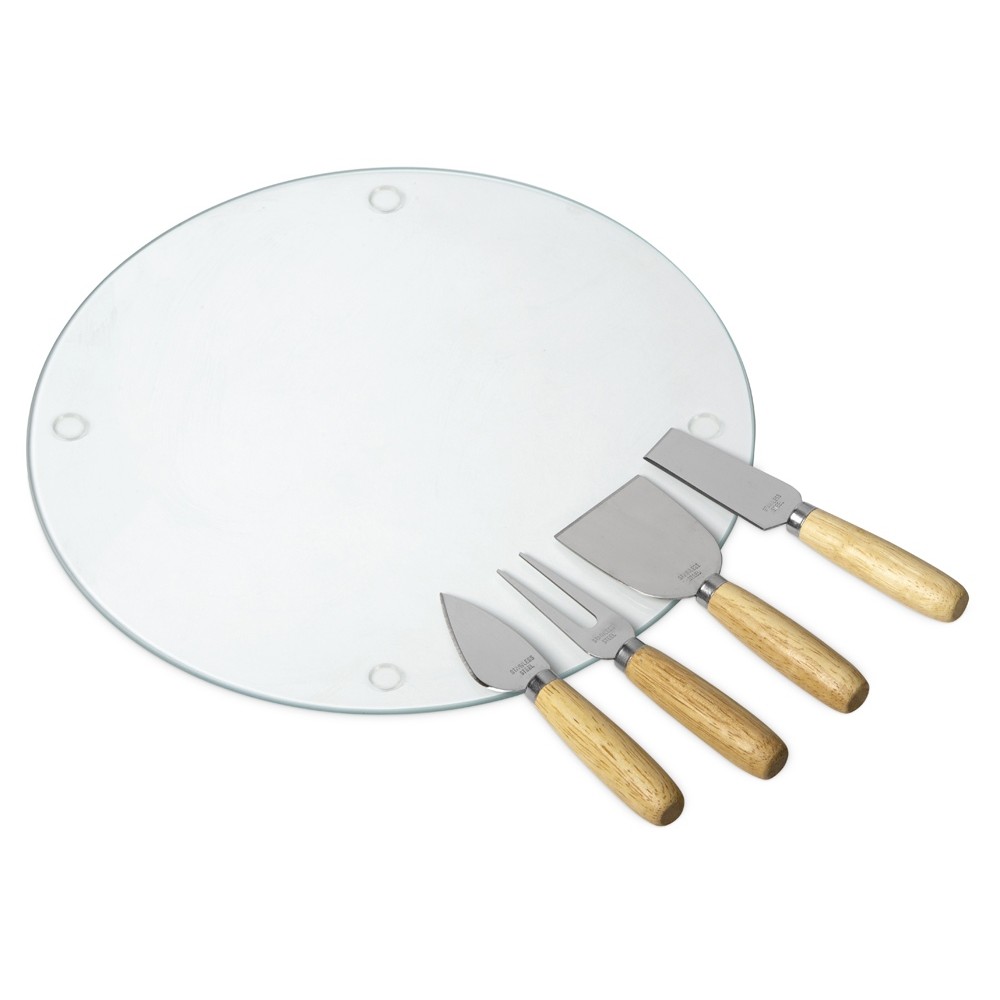 Набор для сыра с круглой стеклянной доской 5в1