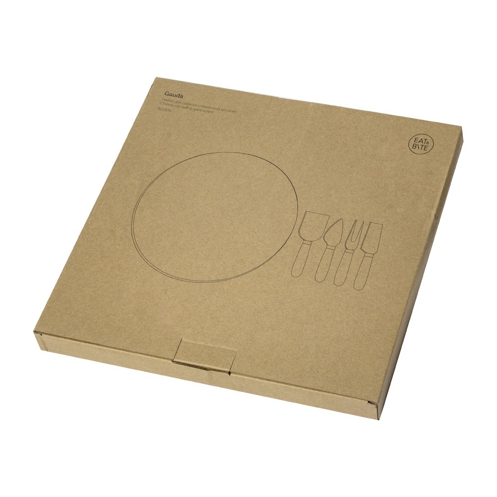 Набор для сыра от Eat&Bite состоит из стеклянной доски и ножей и предназначен для нарезки и подачи сыра разных сортов.