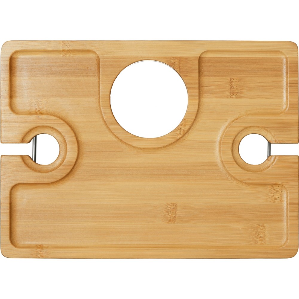 - Надежная фиксация напитков: Два углубления для бокалов и центральное отверстие для бутылки – забудьте о пролитых напитках!