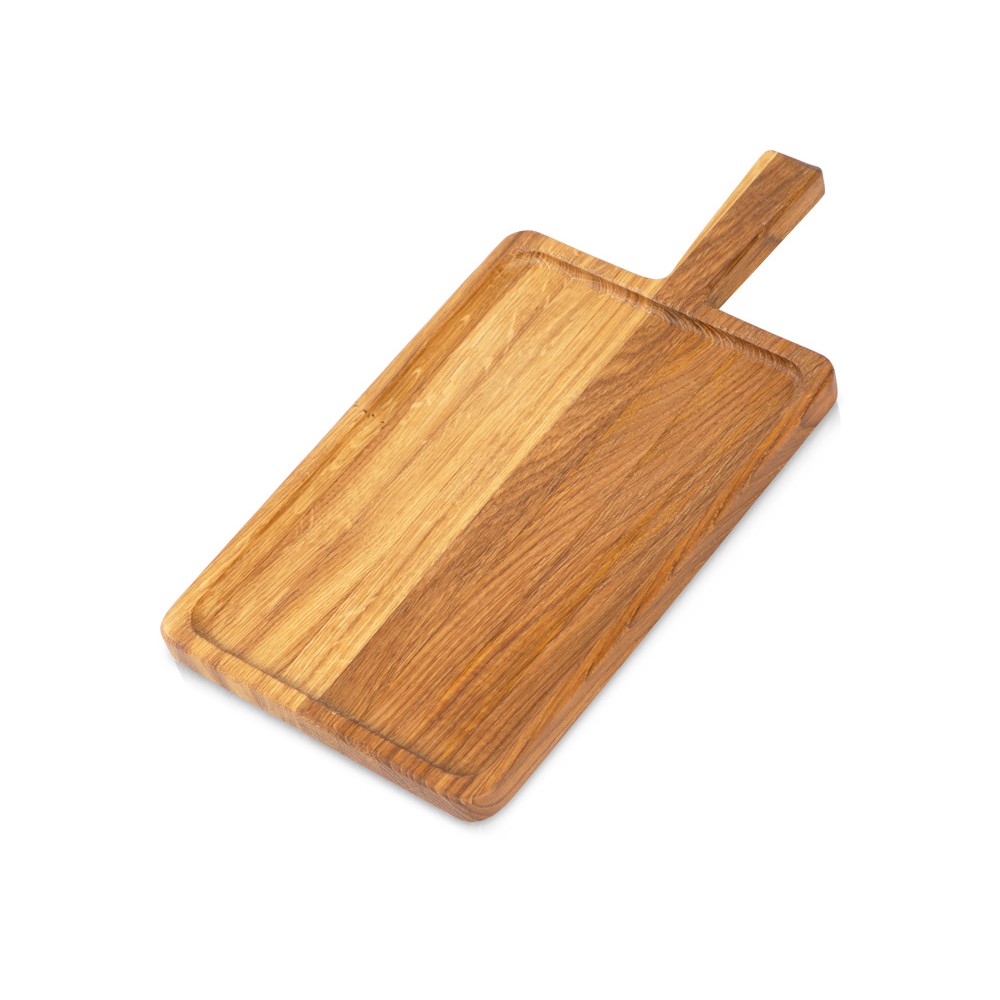 Доска-поднос «Slice» от Eat&Bite изготовлена из натурального дуба. Чтобы дерево не портилось от влаги, но при этом оставалось безопасным в использовании, доска покрыта пищевым маслом.