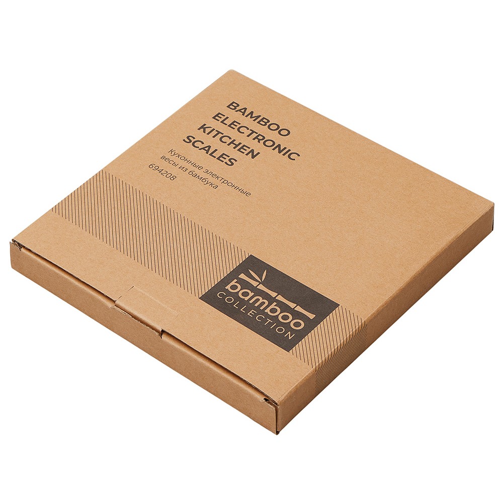 Кухонные весы – незаменимый аксессуар, который пригодится тем, кому часто приходится соблюдать точные пропорции. Платформа изготовлена из натурального бамбука. Этот материал отлично отталкивает влагу и предотвращает распространение бактерий. Лаконичный внешний вид позволяет весам вписываться в любой интерьер.