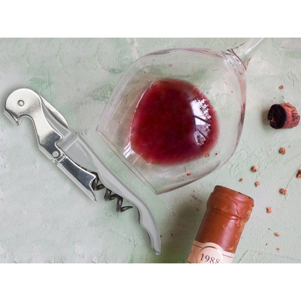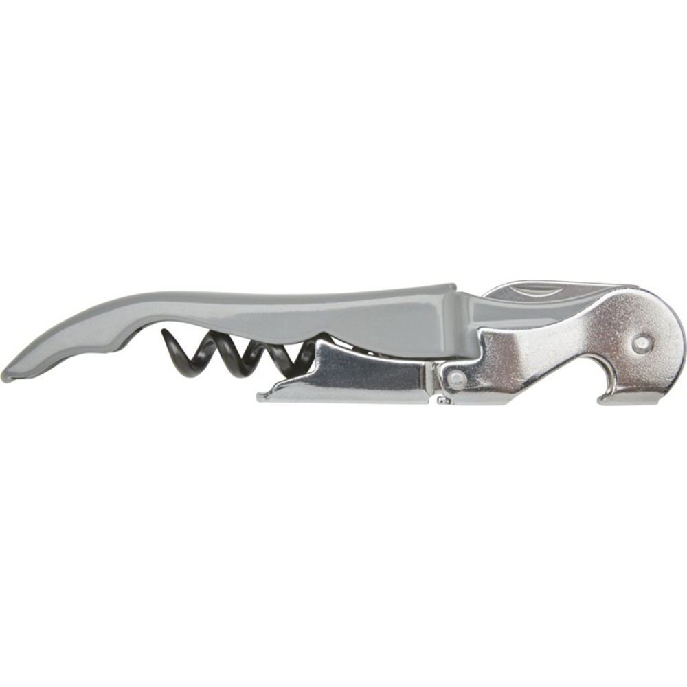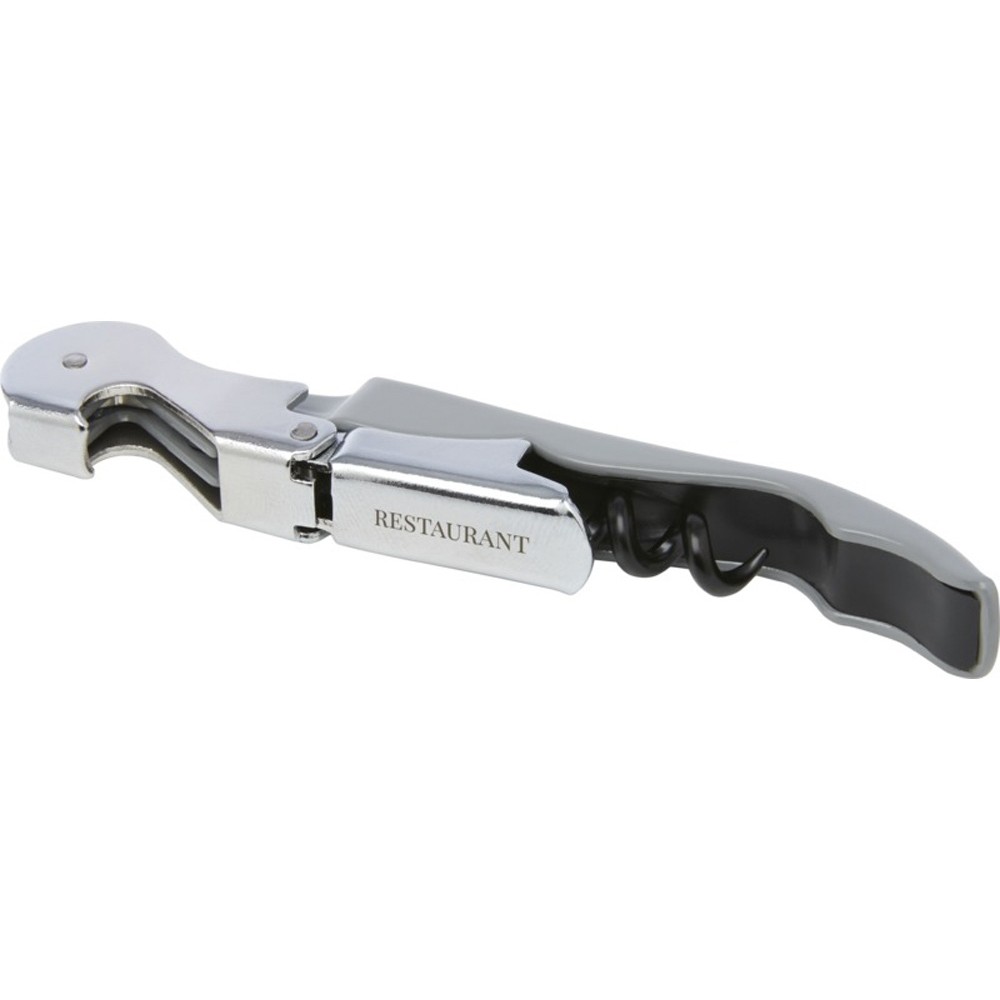 Нож официанта из нержавеющей стали с цветным корпусом со штопором, обрезчиком для фольги и открывалкой для бутылок. Благодаря двухступенчатой конструкции с его помощью вытащить пробку из бутылки не составит труда.
