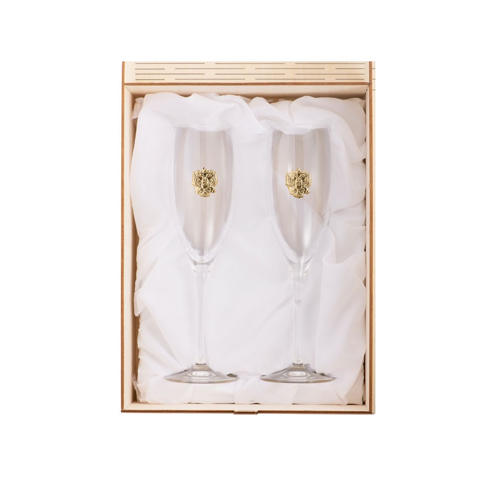 Набор бокалов для шампанского. Благородное флорентийское стекло прекрасно смотрится с российским гербом. Именно так итальянцы решили выразить свою любовь к России.